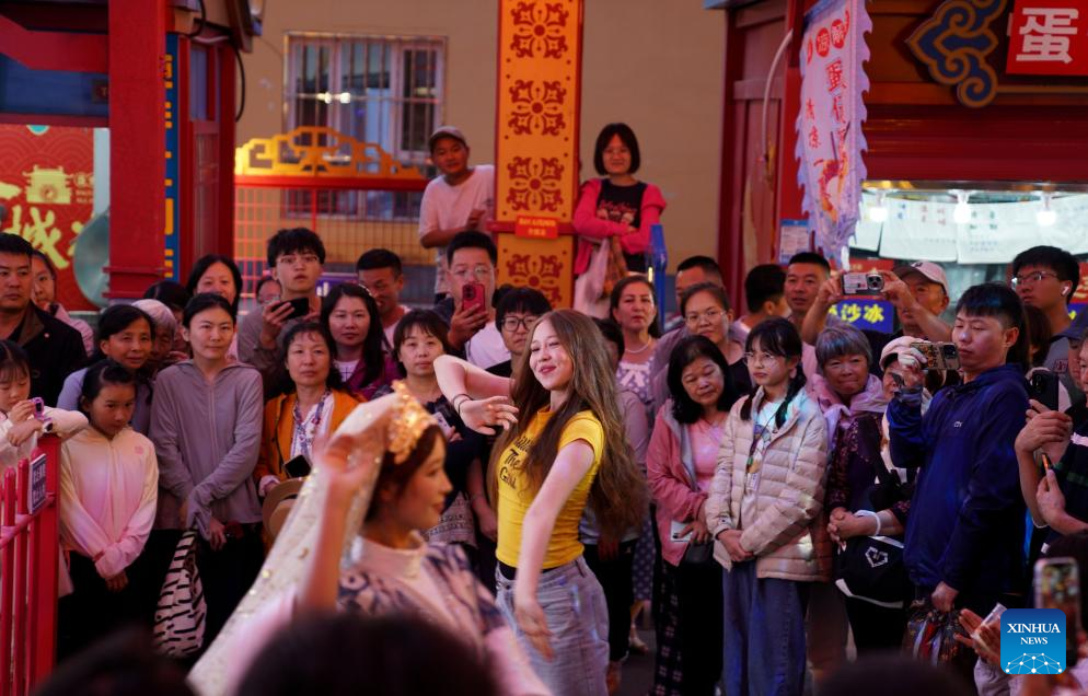 Tourists watch a dance performance at a night market in Tekes County of Ili Kazak Autonomous Prefecture, northwest China's Xinjiang Uygur Autonomous Region, July 31, 2025. Ili Kazak Autonomous Prefecture has ushered in its peak tourism period. The region's unique natural landscapes and cultural sites have attracted a large number of visitors. It received 54.93 million domestic tourists in the first seven months of this year, a year-on-year increase of 10.31 percent. (Xinhua/Liu Lianfen)