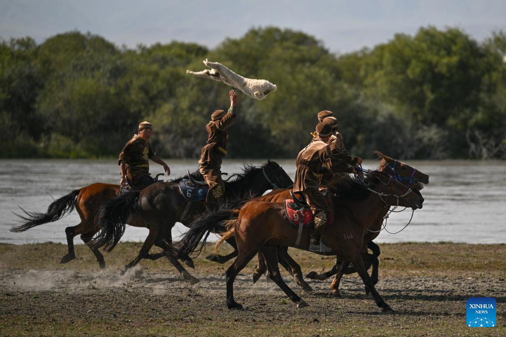 Horsemen perform in Zhaosu County of Ili Kazak Autonomous Prefecture, northwest China's Xinjiang Uygur Autonomous Region, July 29, 2025. Ili Kazak Autonomous Prefecture has ushered in its peak tourism period. The region's unique natural landscapes and cultural sites have attracted a large number of visitors. It received 54.93 million domestic tourists in the first seven months of this year, a year-on-year increase of 10.31 percent. (Xinhua/Xin Yuewei)