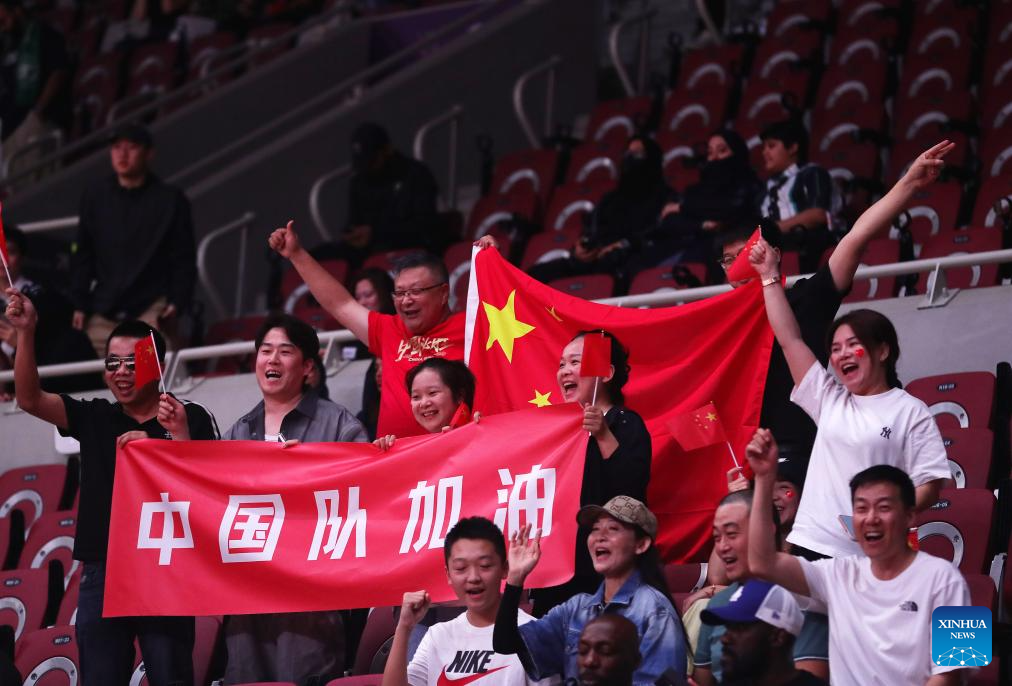 Spectators cheer for players of China during the Group C match between China and Saudi Arabia at the FIBA Asia Cup 2025 in Jeddah, Saudi Arabia, Aug. 5, 2025. (Xinhua/Wang Dongzhen)