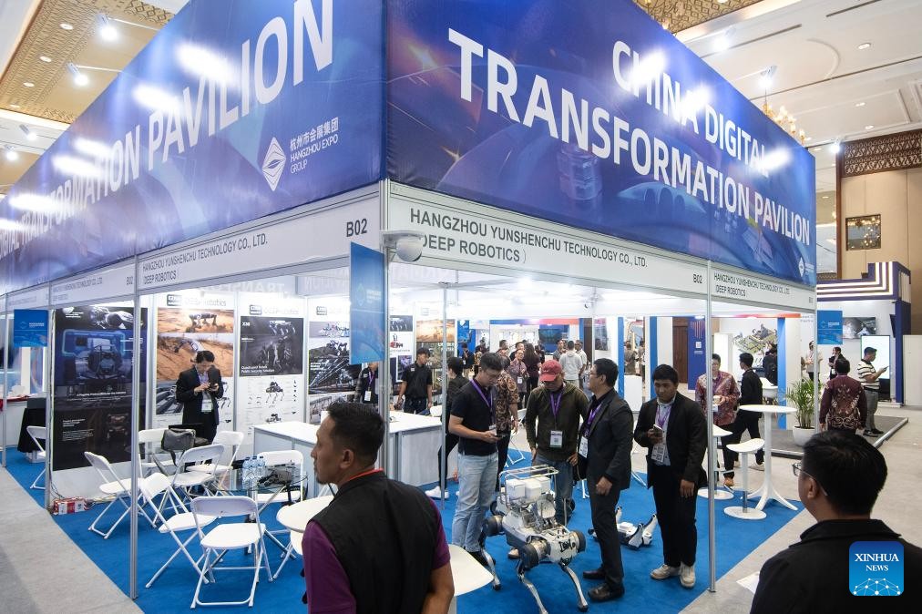 This photo taken on Aug. 6, 2025 shows the China Digital Transformation Pavilion during the Digital Transformation Indonesia Conference and Expo 2025 in Jakarta, Indonesia. Scheduled from August 6 to 7, the event features a conference and an expo showcasing innovative technologies in cyber security, artificial intelligence, network infrastructure, etc. (Xinhua/Veri Sanovri)
