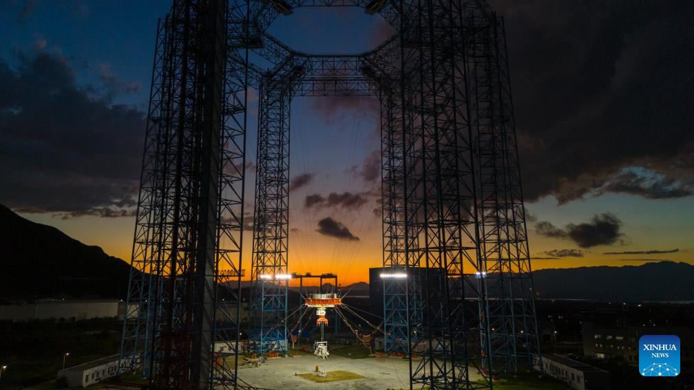 The test completed on Wednesday represents a key step in the development of China's manned lunar exploration program, and it also marks the first time that China has carried out a test for extraterrestrial landing and takeoff of a manned spacecraft, said the China Manned Space Agency. (Photo by Zhang Bin/Xinhua)