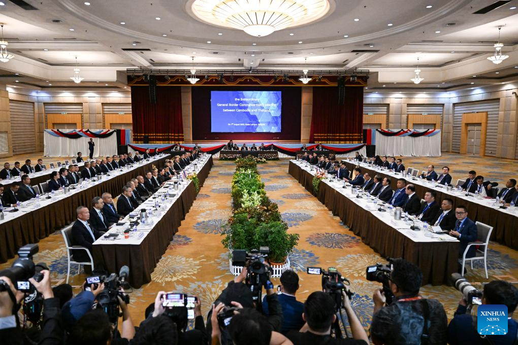 This photo taken on Aug. 7, 2025 shows an extraordinary General Border Committee (GBC) meeting held in Kuala Lumpur, Malaysia. Cambodia and Thailand on Thursday signed an agreement on ceasefire arrangements, representatives of the two countries said after an extraordinary General Border Committee (GBC) meeting held in the Malaysian capital. (Xinhua/Cheng Yiheng)