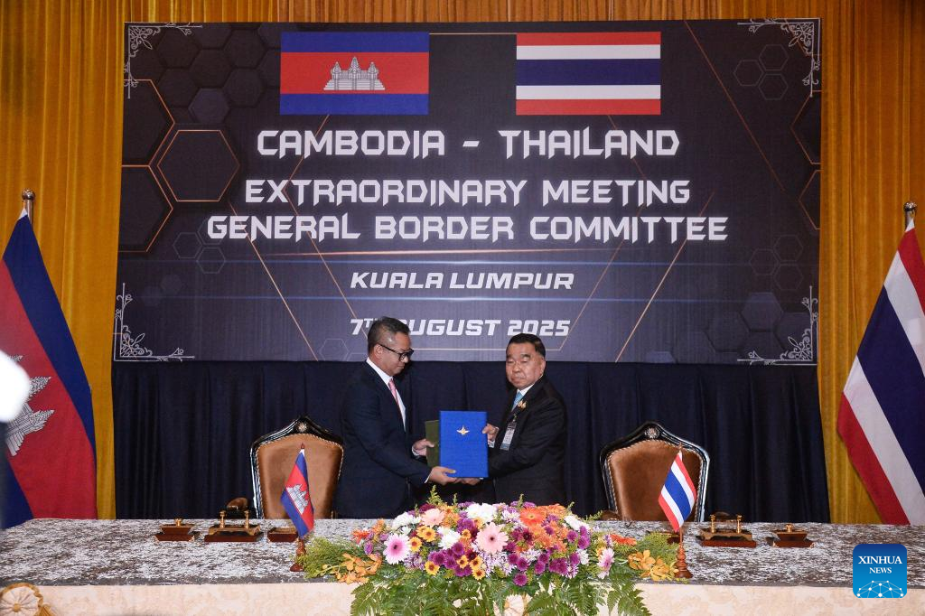 KUALA LUMPUR, Aug. 7 (Xinhua) -- Cambodia and Thailand on Thursday signed an agreement on ceasefire arrangements, representatives of the two countries said after an extraordinary General Border Committee (GBC) meeting held in the Malaysian capital.