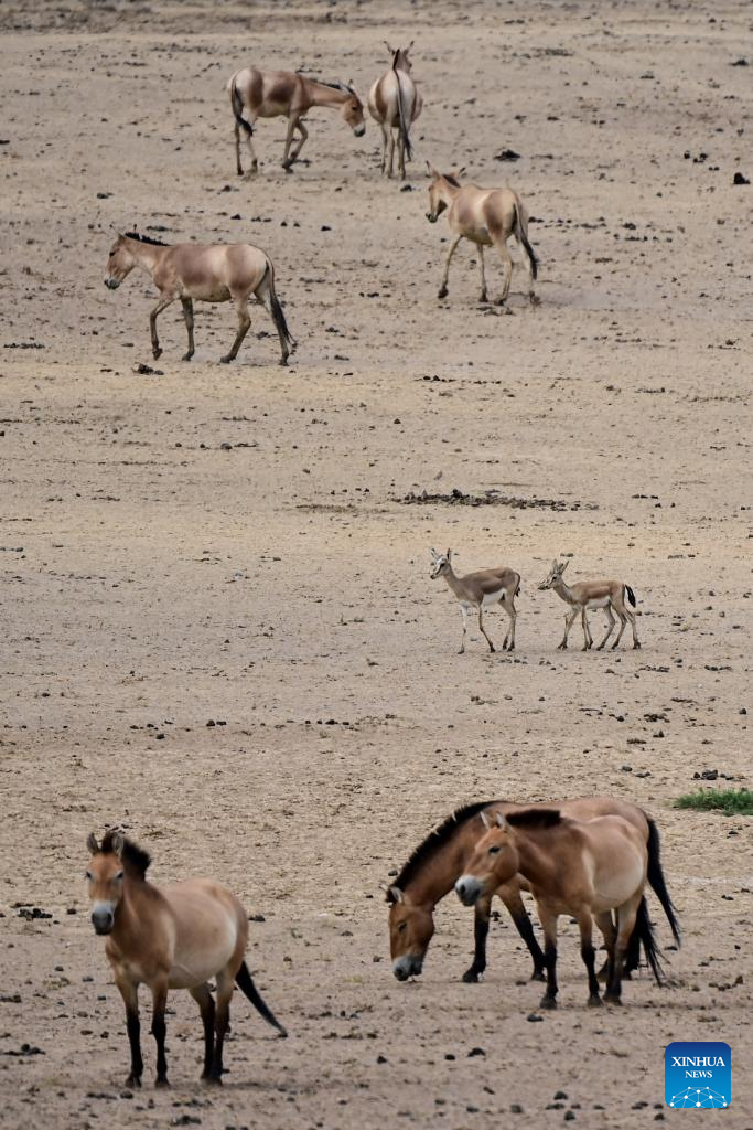 Przewalski's horses and other wild animals are pictured at the Karamaile Mountain Nature Reserve, northwest China's Xinjiang Uygur Autonomous Region, July 28, 2025. (Xinhua/Ding Lei)