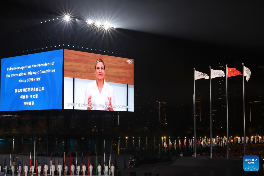 CHENGDU, Aug. 7 (Xinhua) -- International Olympic Committee (IOC) President Kirsty Coventry encouraged participants to cherish friendship, celebrate diversity, and enjoy the moment as she delivered a video message at the opening ceremony of The World Games 2025 in Chengdu, welcoming nearly 4,000 athletes from around the globe.