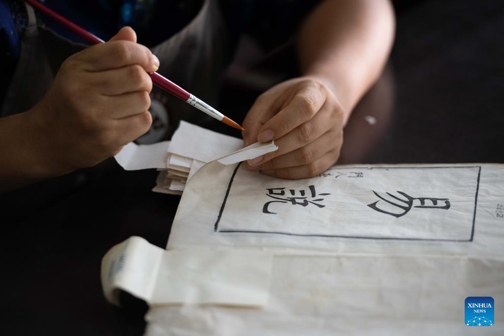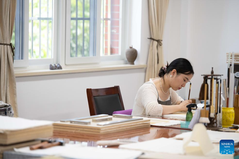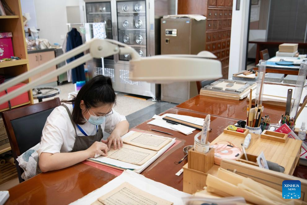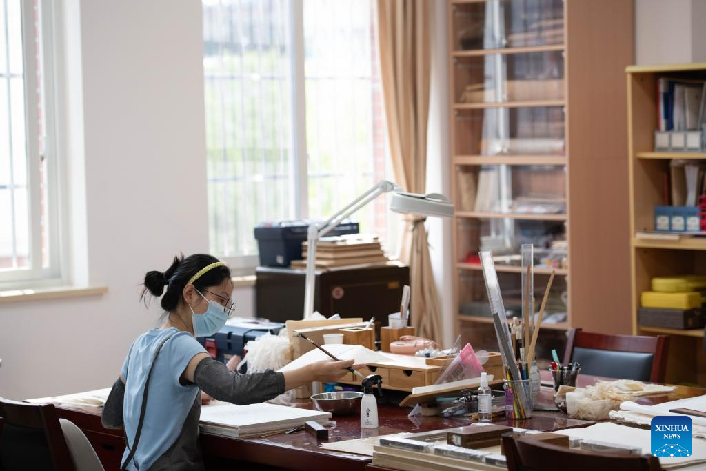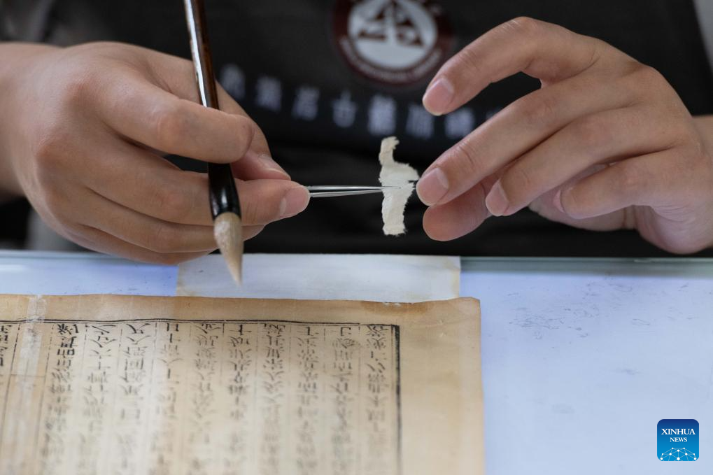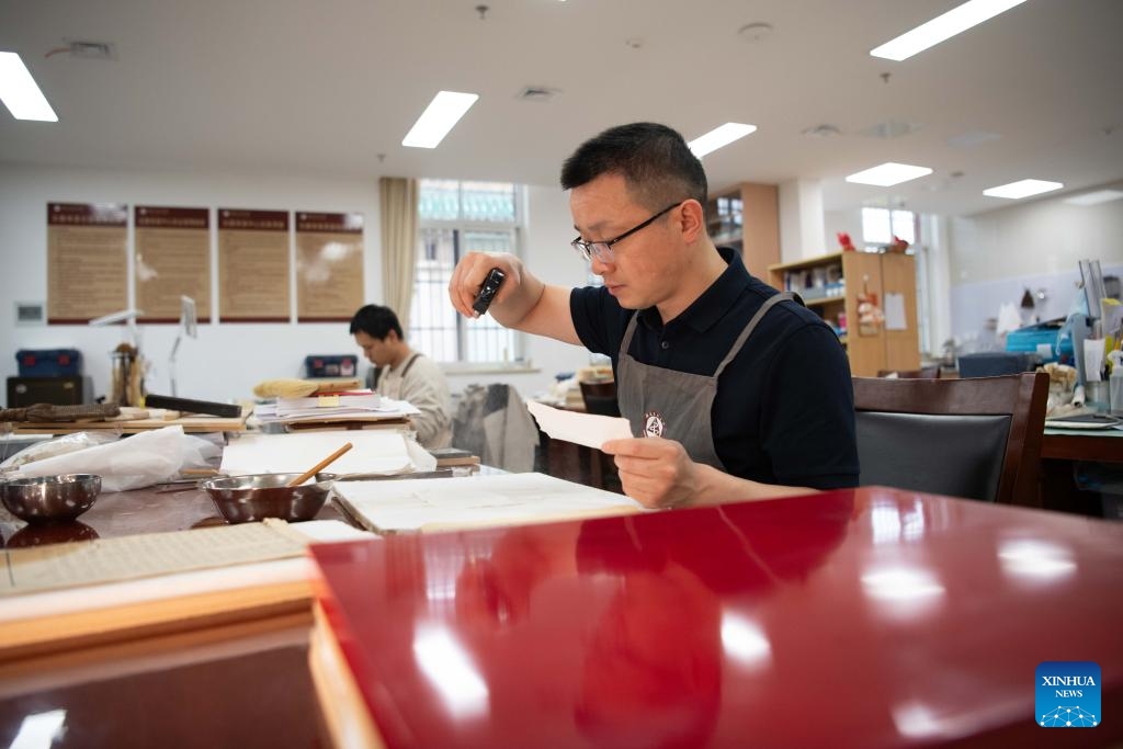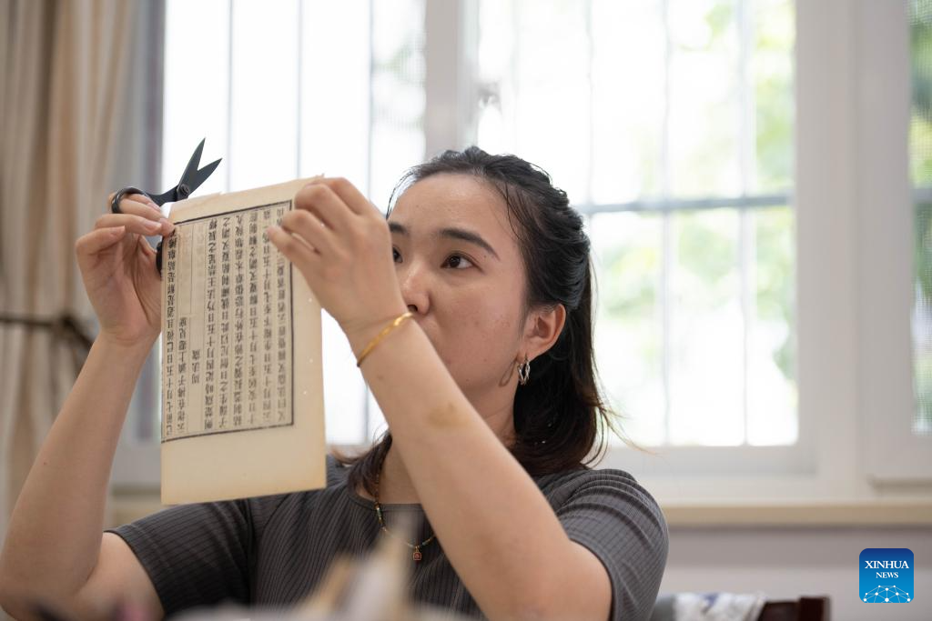 Book restorer Geng Ning restores a book at Anhui Provincial Library in Hefei, east China's Anhui Province, June 17, 2025. The Anhui Provincial Library, established in 1913, boasts a rich collection of ancient books. As one of China's earliest public libraries, it houses more than 350,000 volumes of ancient books.