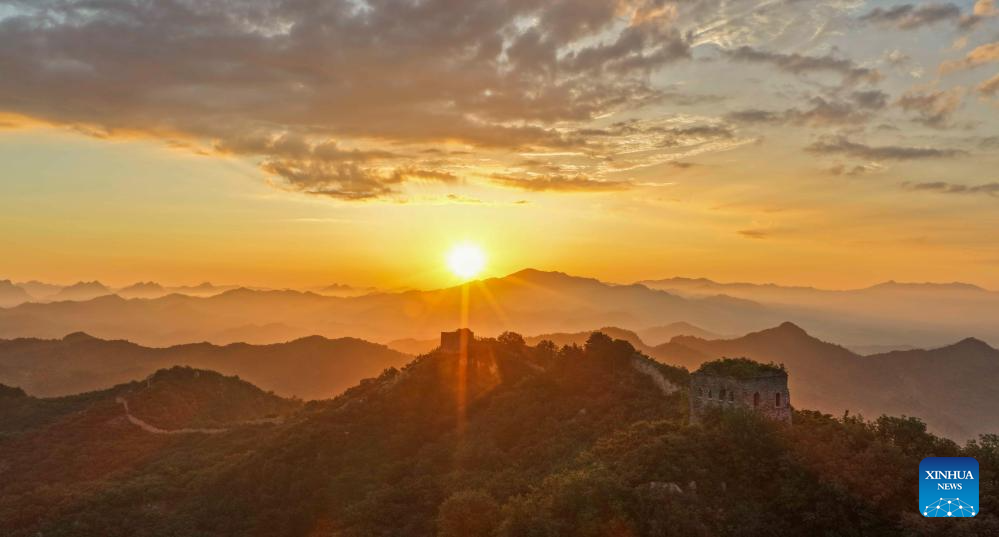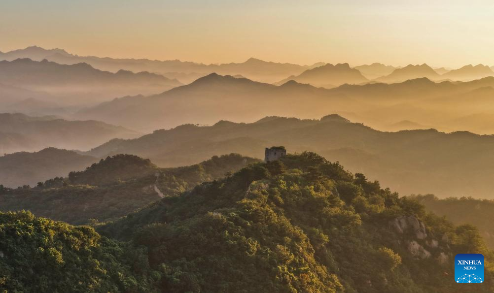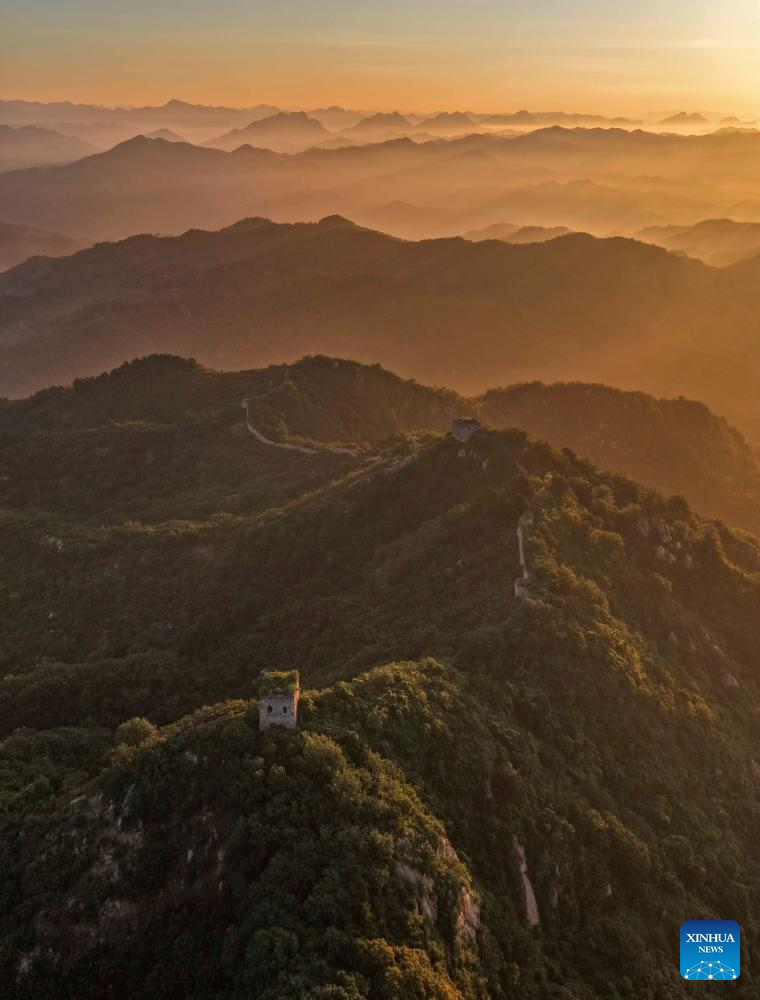 An aerial drone photo taken on Aug. 7, 2025 shows a view of the Great Wall in Zunhua City, north China's Hebei Province. (Photo by Liu Mancang/Xinhua)