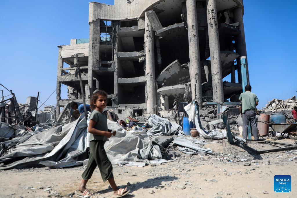 A Palestinian boy inspects the damage after an Israeli airstrike in the Sheikh Radwan area, northwest of Gaza City, on Aug. 6, 2025. At least 27 Palestinians were killed in Israeli attacks on Wednesday, while 20 others died in a food truck overturn in the Gaza Strip, according to Palestinian sources. (Photo by Rizek Abdeljawad/Xinhua)