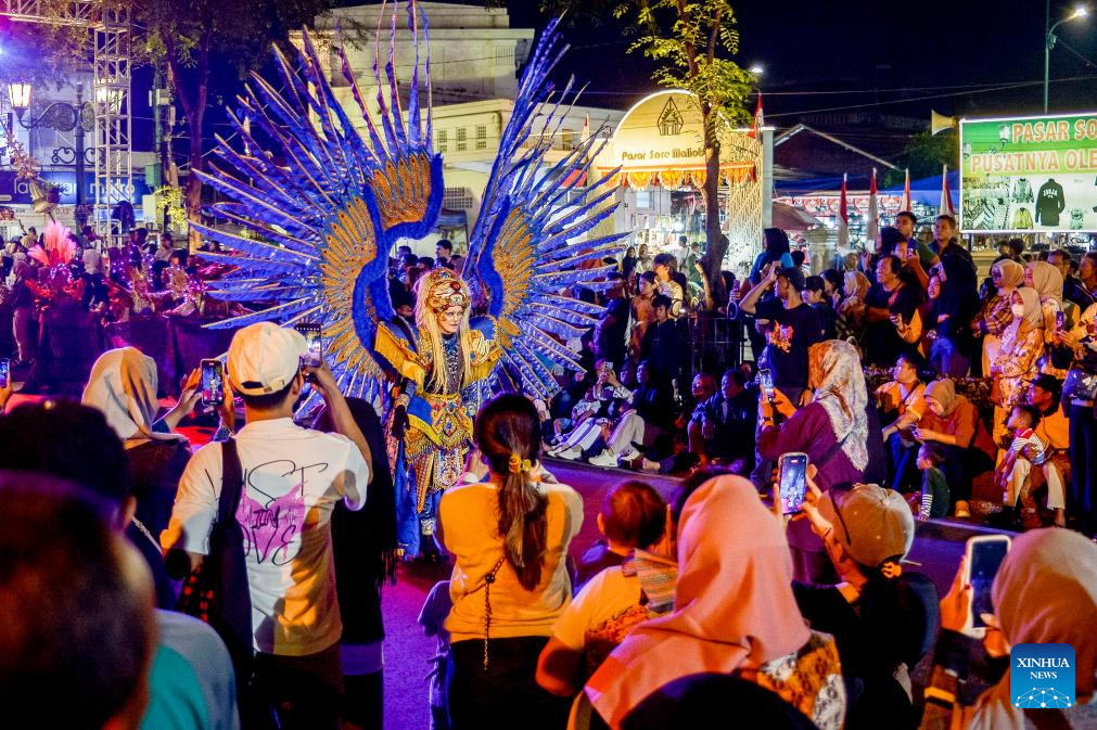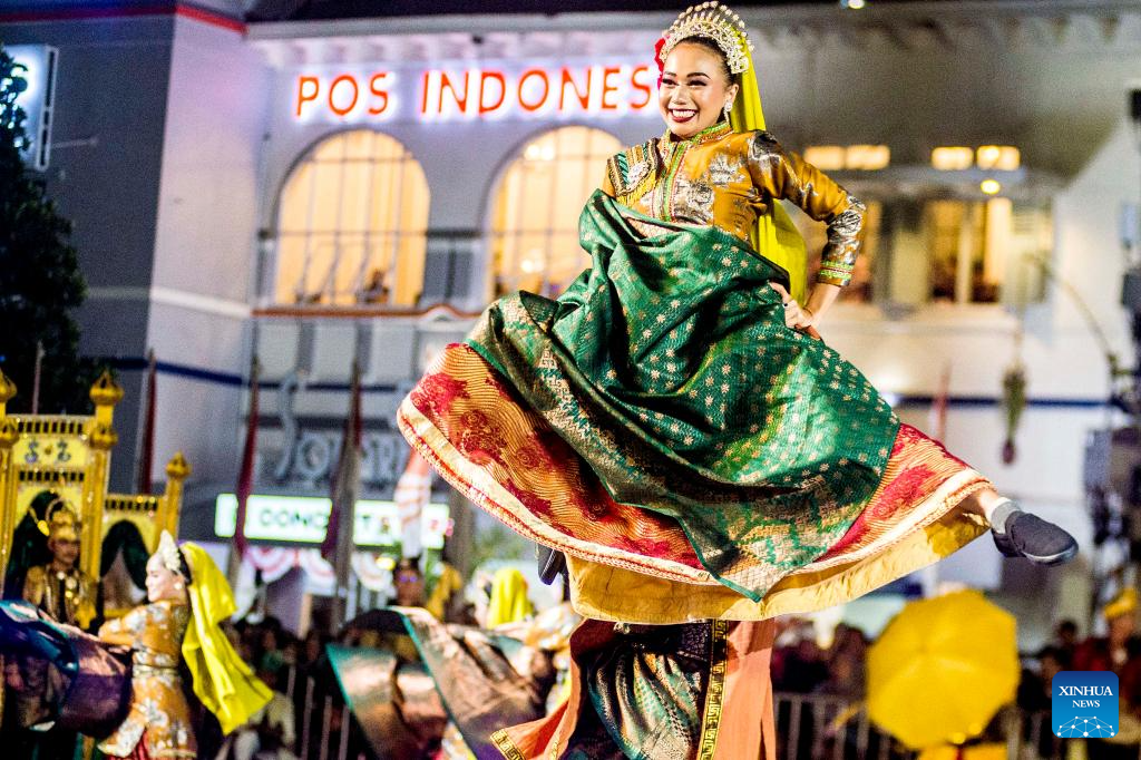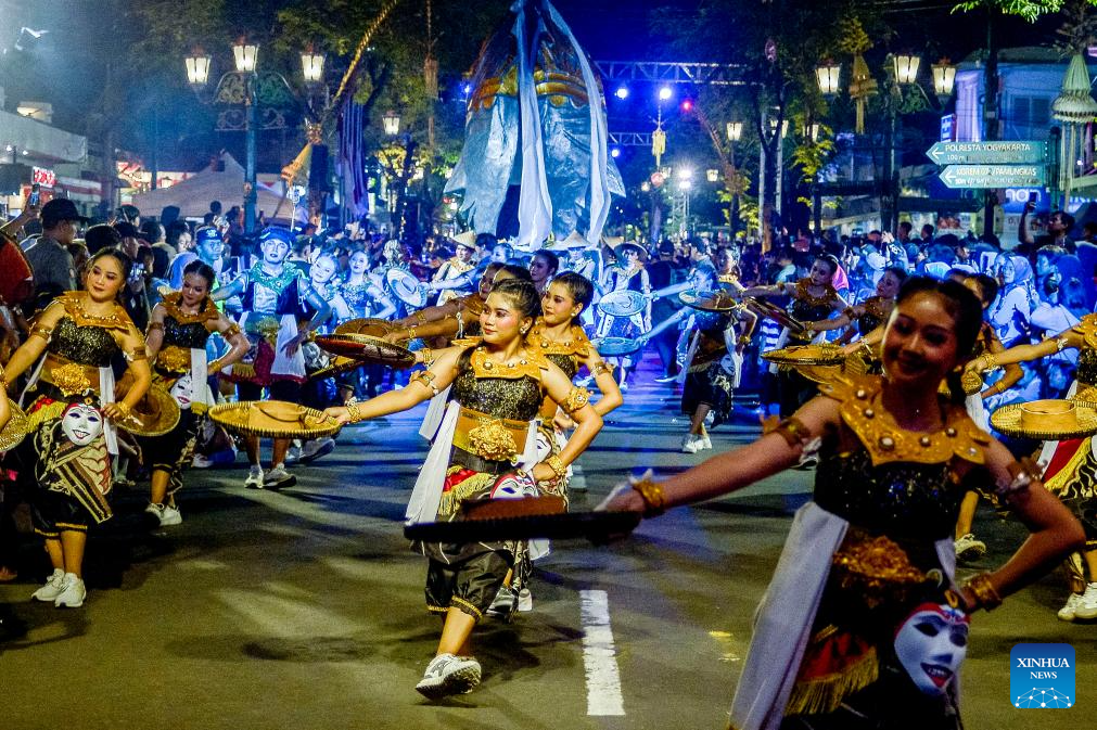 Dancers are pictured during Indonesian Street Performance 2025 in Yogyakarta, Indonesia, Aug. 6, 2025. (Photo by Agung Supriyanto/Xinhua)