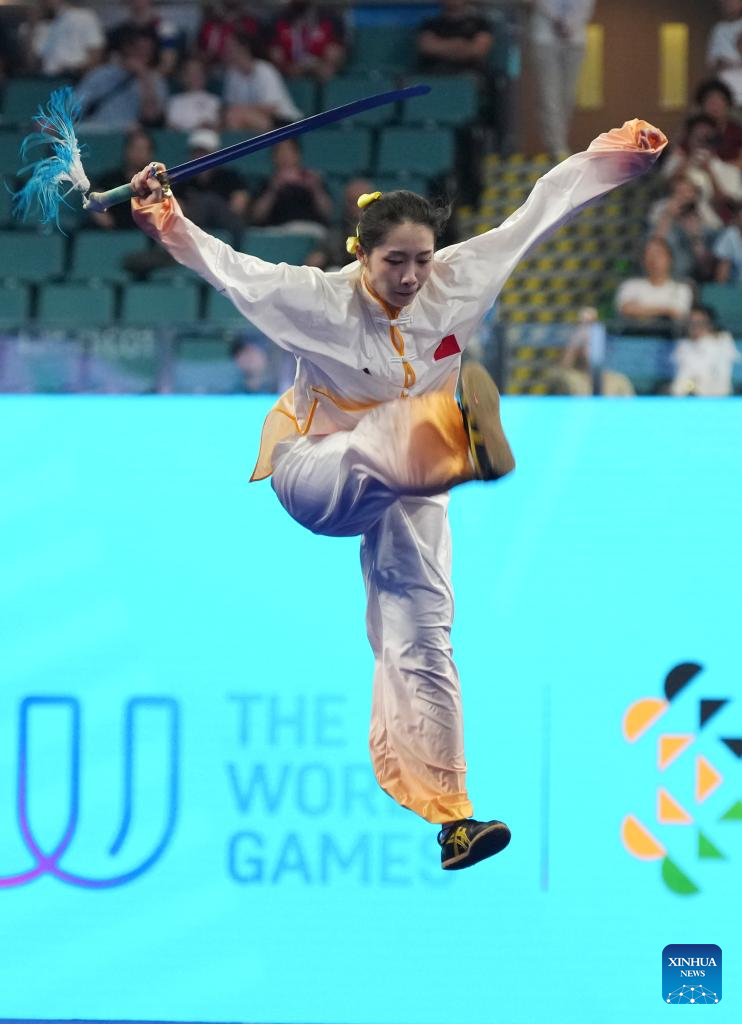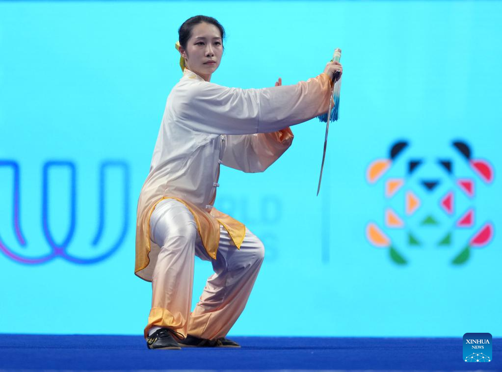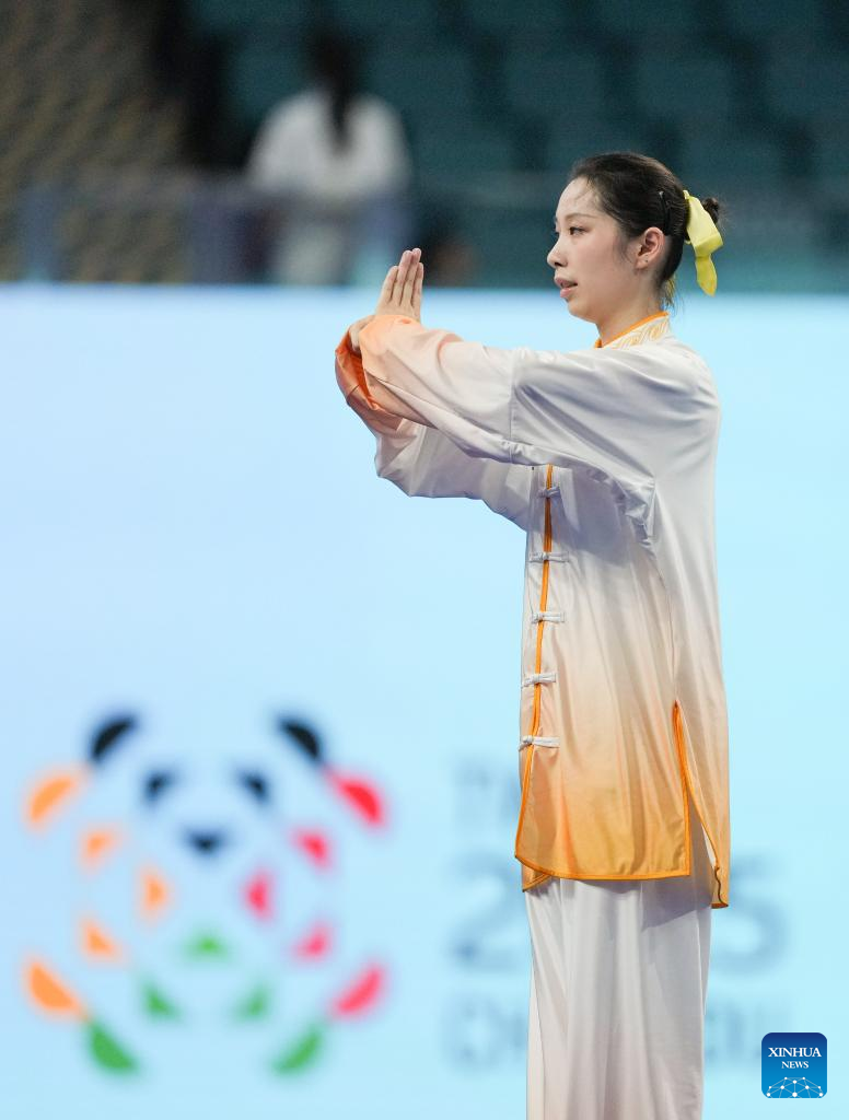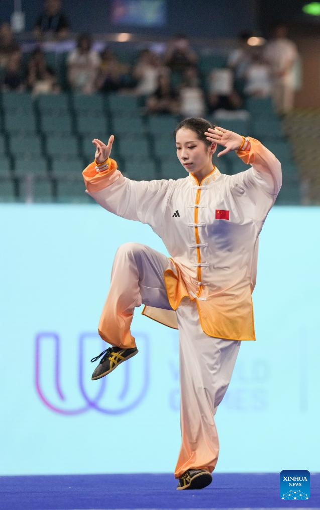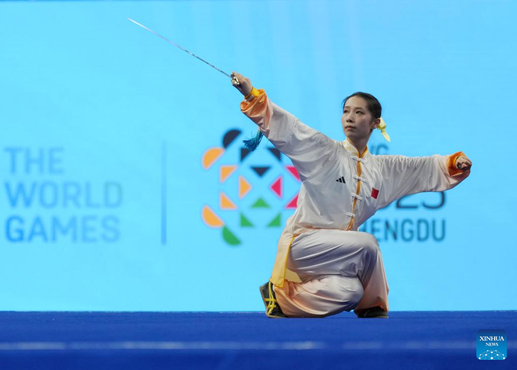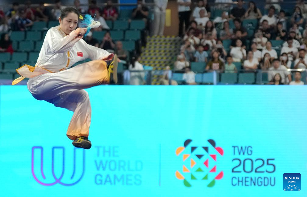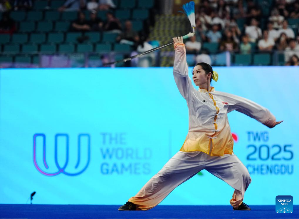 CHENGDU, Aug. 8 (Xinhua) -- Lu Zhuoling won the women's Wushu Taijiquan-Taijijian on Friday night, securing China's first gold at The World Games 2025 in Chengdu.