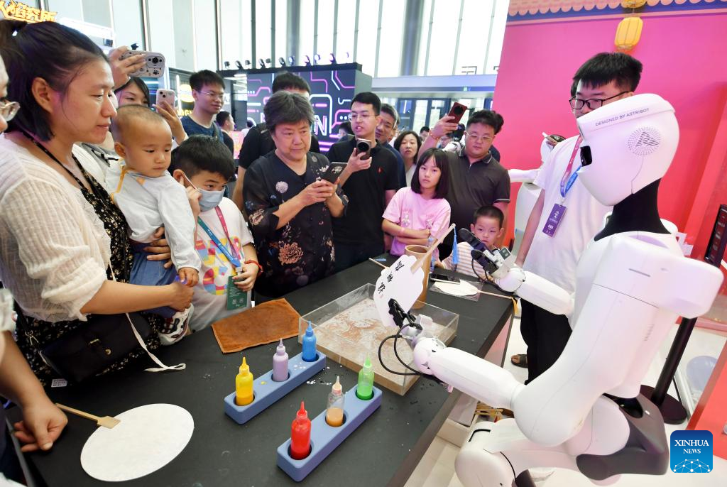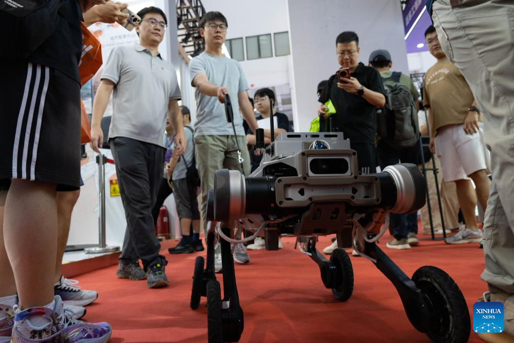 Co-hosted by the Chinese Institute of Electronics and the World Robot Cooperation Organization, the five-day event features forums, exhibitions, competitions and networking events, with over 200 robotics companies from around the world presenting their latest innovations. (Xinhua/Xie Han)