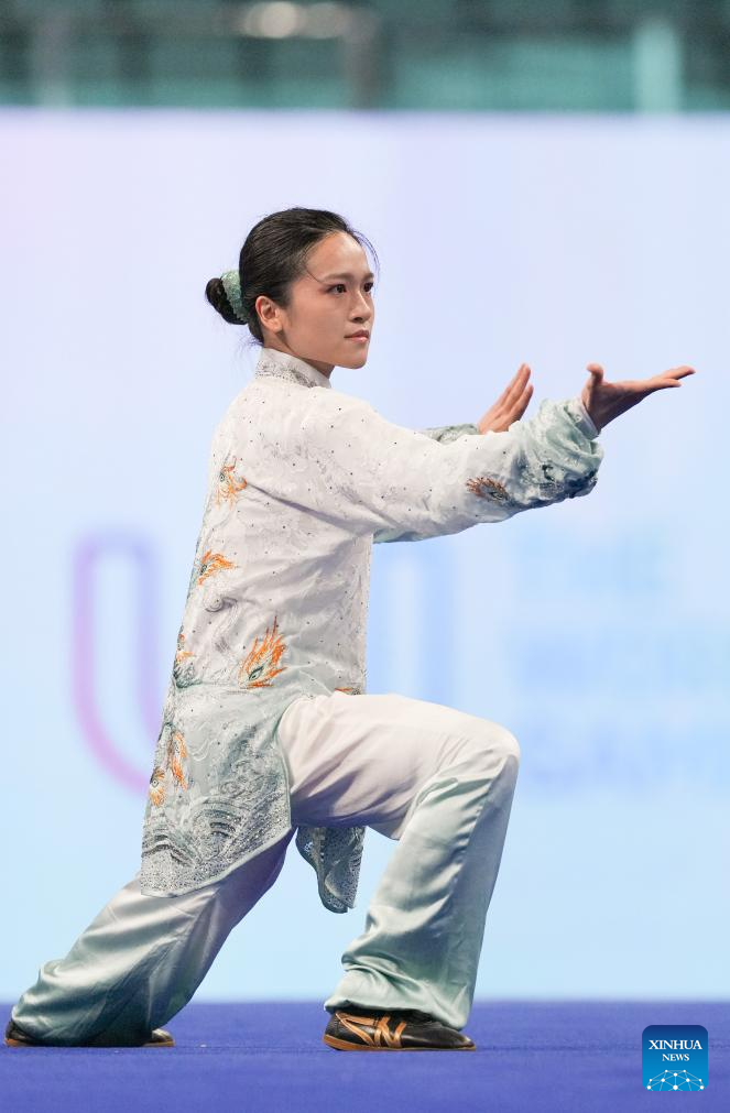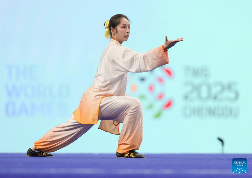 Lu Zhuoling of China competes during the Taijiquan competiton of women's Taijiquan-Taijijian Final of Wushu event at the World Games 2025 in Chengdu, southwest China's Sichuan Province, Aug. 8, 2025. (Xinhua/Xu Bingjie)