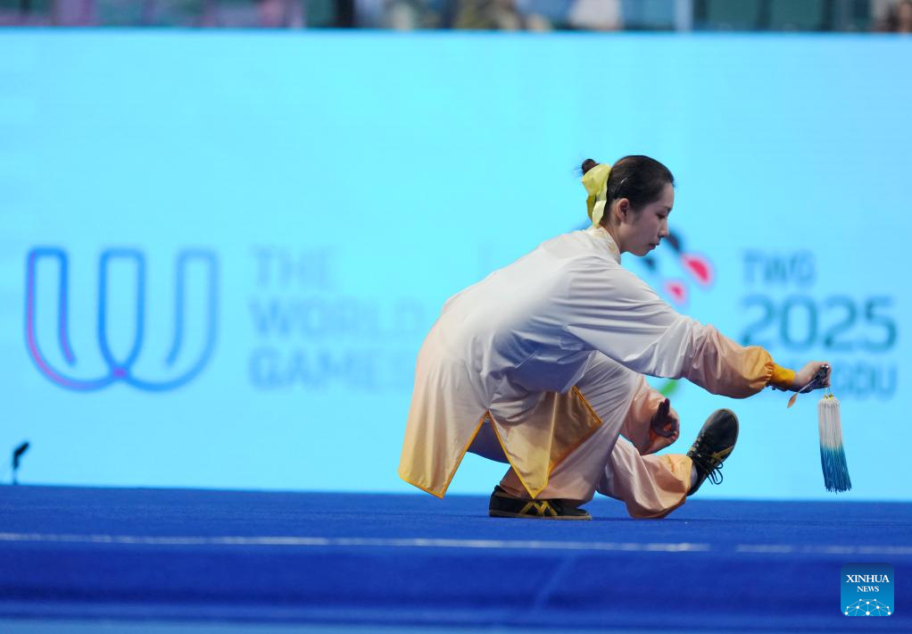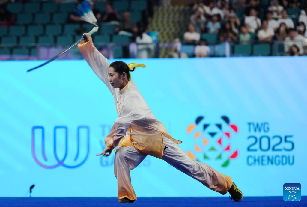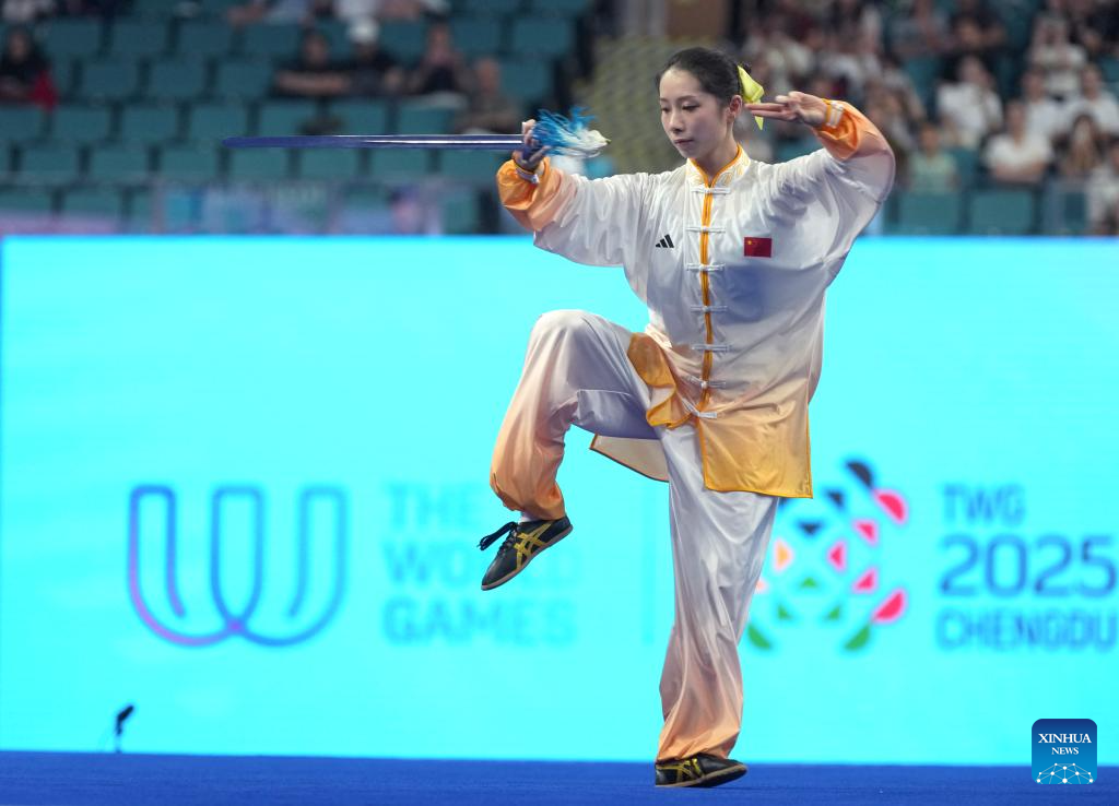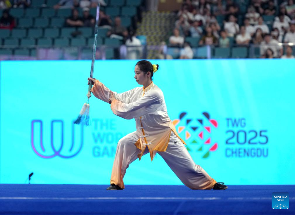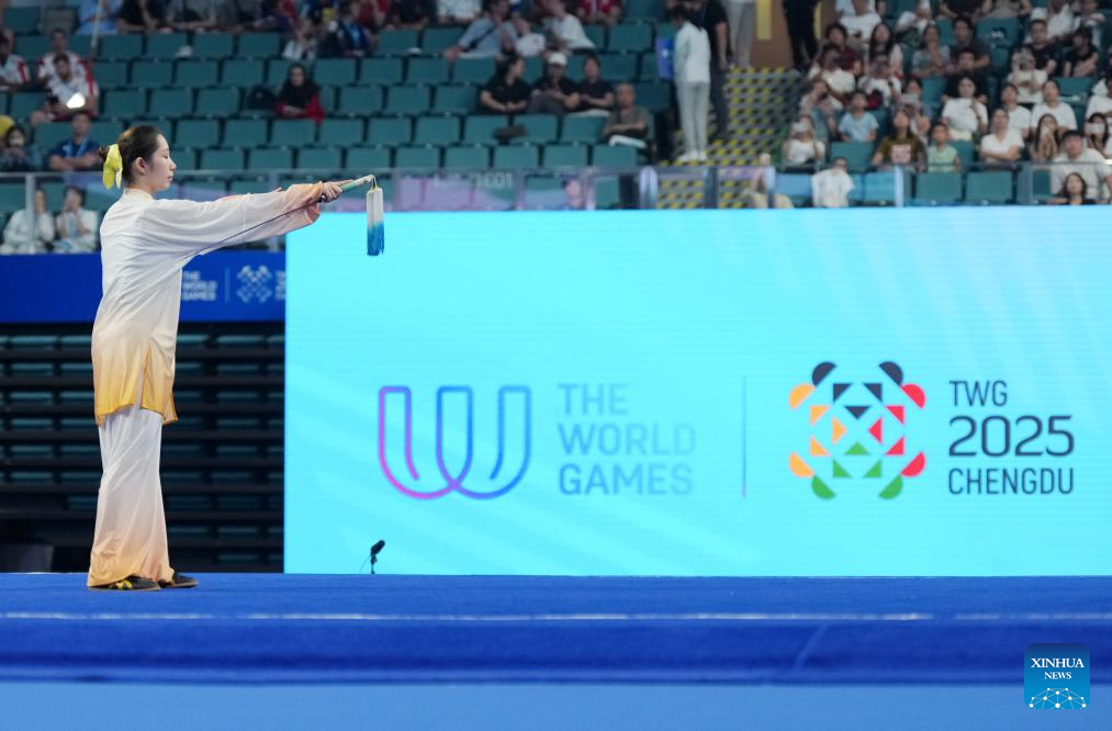 CHENGDU, Aug. 8 (Xinhua) -- Lu Zhuoling won the women's Wushu Taijiquan-Taijijian on Friday night, securing China's first gold at The World Games 2025.