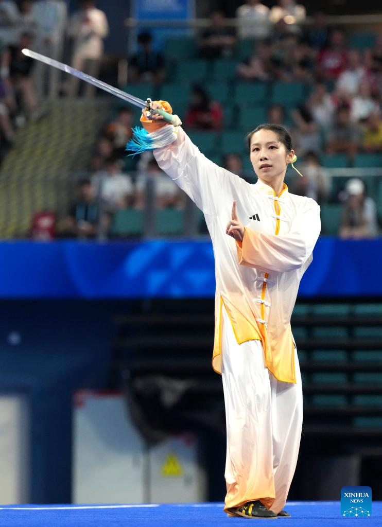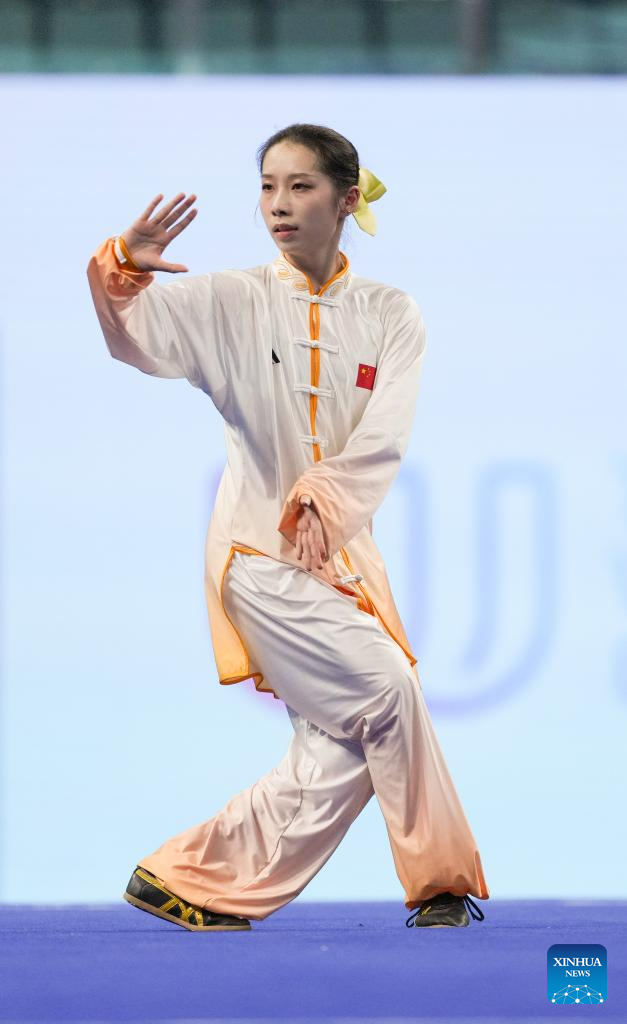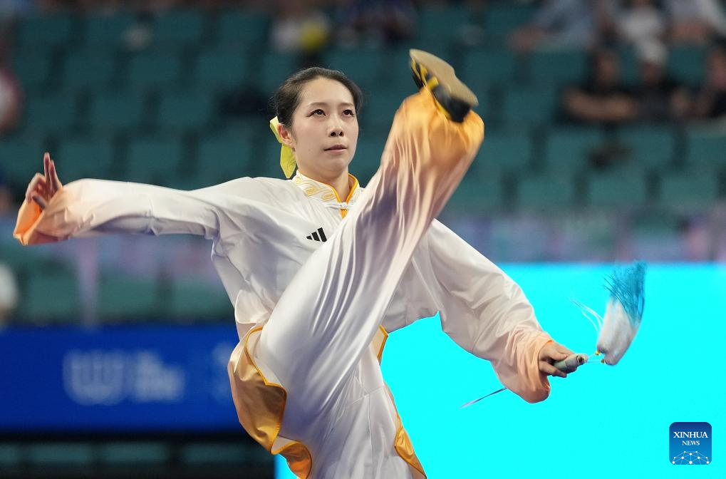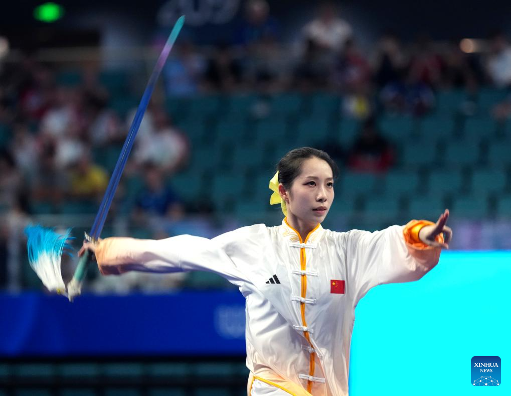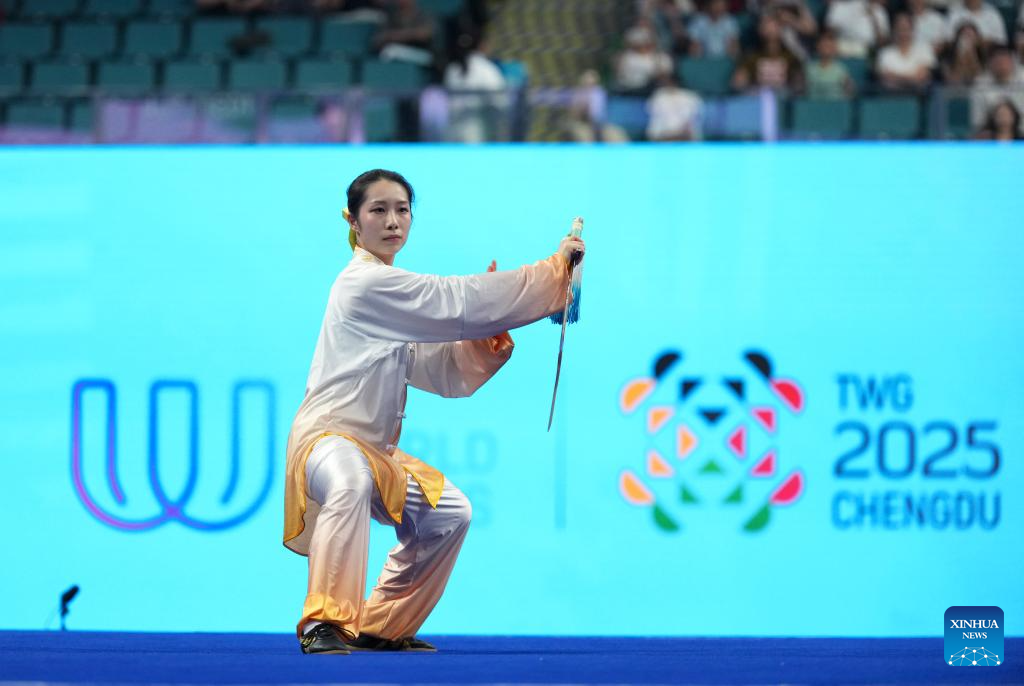 CHENGDU, Aug. 8 (Xinhua) -- Lu Zhuoling won the women's Wushu Taijiquan-Taijijian on Friday night, securing China's first gold at The World Games 2025.