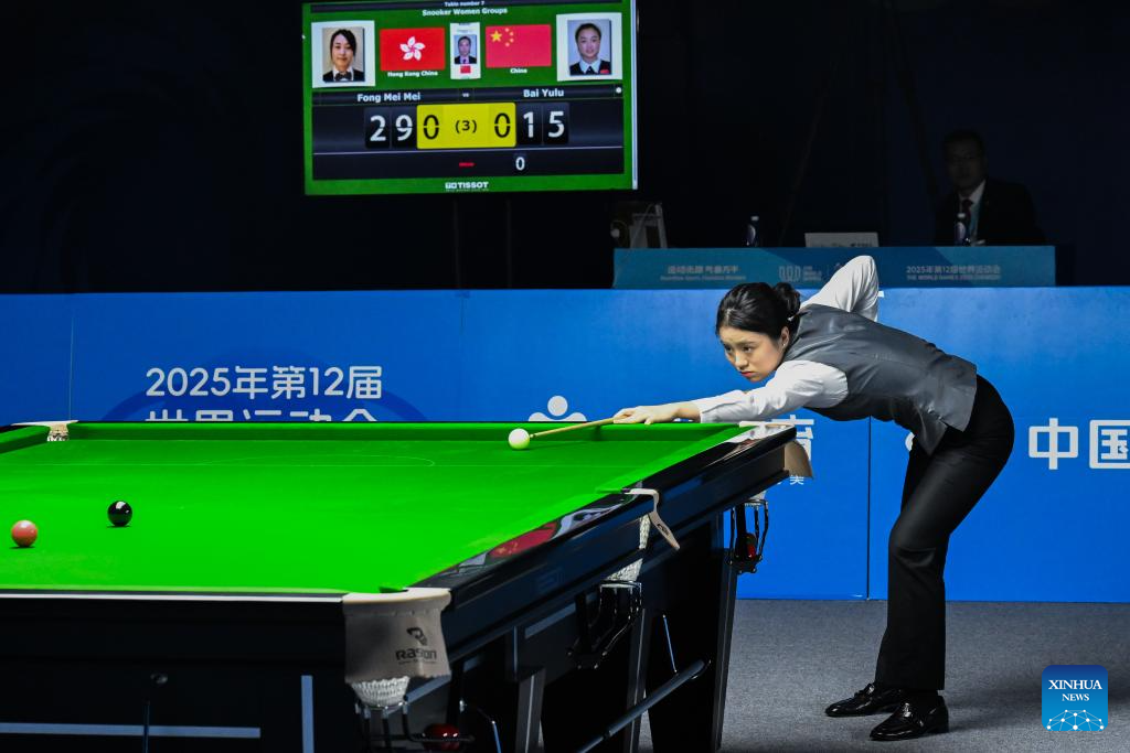 CHENGDU, Aug. 10 (Xinhua) -- Women's snooker world champion Bai Yulu enjoyed a winning debut at The World Games 2025 in Chengdu, on the first game day of billiards.