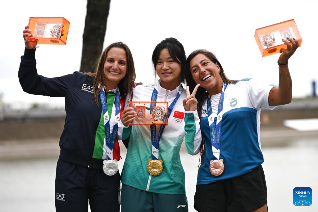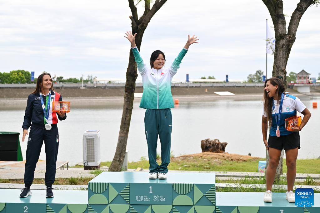 CHENGDU, Aug. 10 (Xinhua) -- Chinese water skier Xu Lu claimed victory in the women's wakeboard freestyle at the 2025 World Games held at the Sancha Lake International Aquatics Center here on Sunday, while Alice Virag of Italy and Argentina's Eugenia De Armas finished second and third, respectively.
