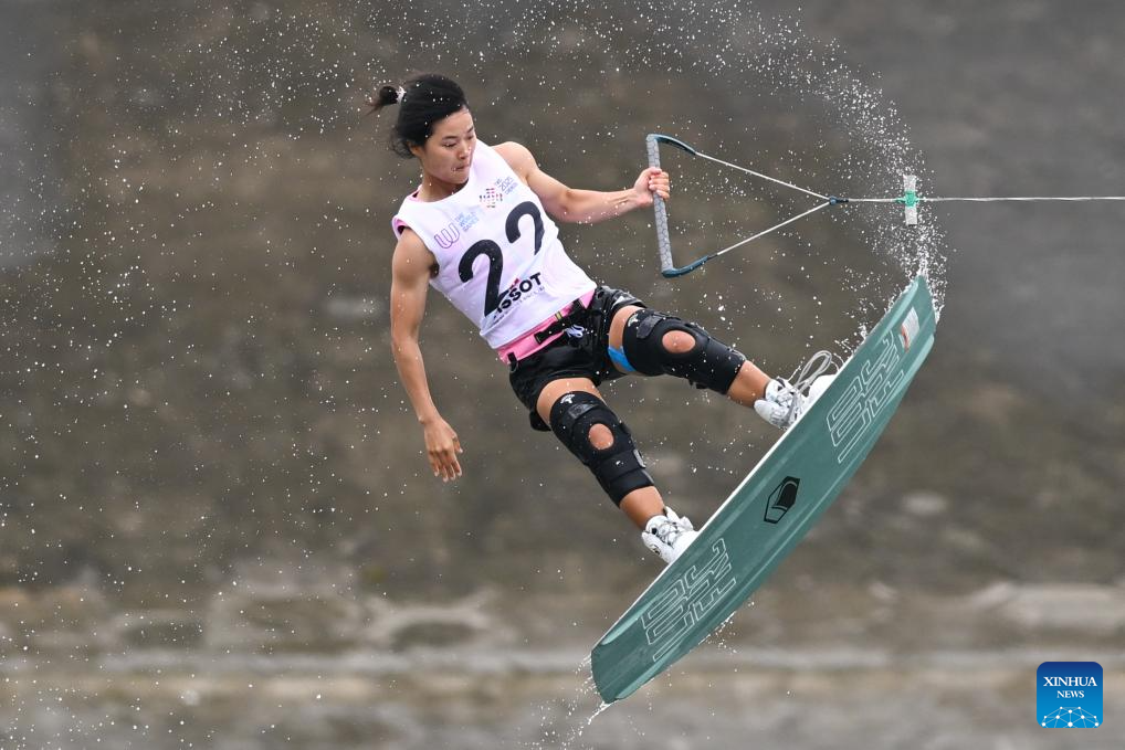Xu Lu of China competes during the women's wakeboard freestyle final of Waterski & Wakeboard event at The World Games 2025 in Chengdu, southwest China's Sichuan Province, Aug. 10, 2025. (Xinhua/Chen Zhenhai)