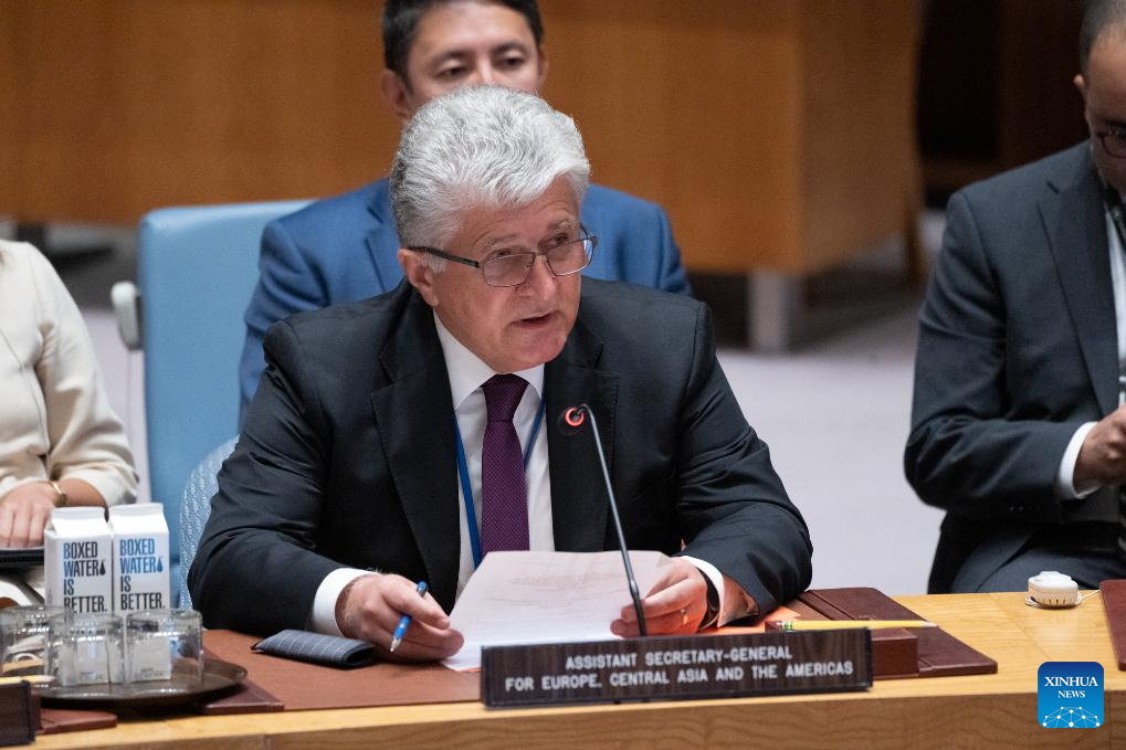 Miroslav Jenca, UN assistant secretary-general for Europe, Central Asia and the Americas, speaks at a Security Council meeting at the UN headquarters in New York, on Aug. 10, 2025. Jenca warned Sunday that Israel's decision to take over Gaza City may trigger another calamity in Gaza. (Evan Schneider/UN Photo/Handout via Xinhua)