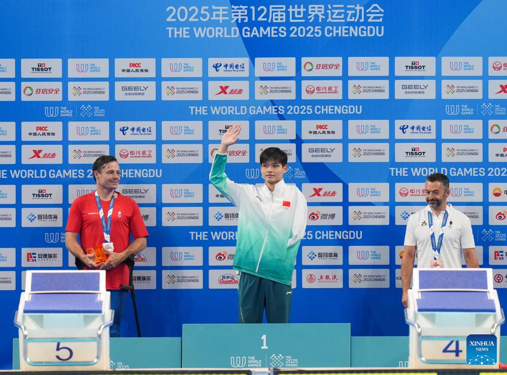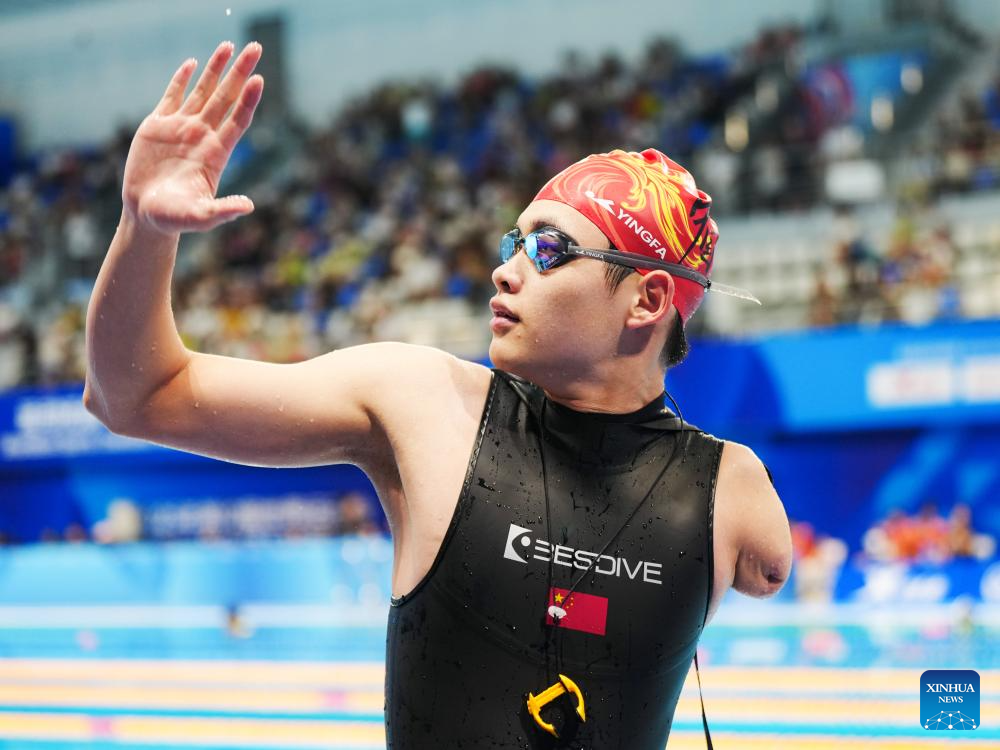 CHENGDU, Aug. 11 (Xinhua) -- Chinese para athlete Long Dengxi claimed his second gold in freediving at The World Games 2025 here on Monday, while Hungary's Zsofia Torocsik broke the world record of the women's dynamic with fins by 16 meters.