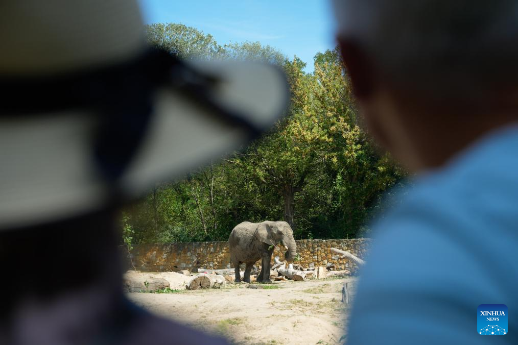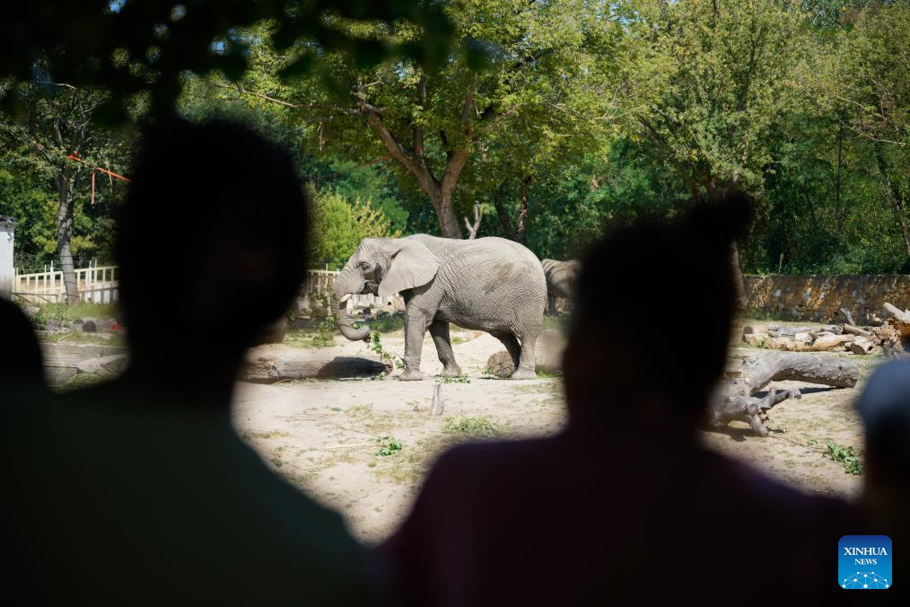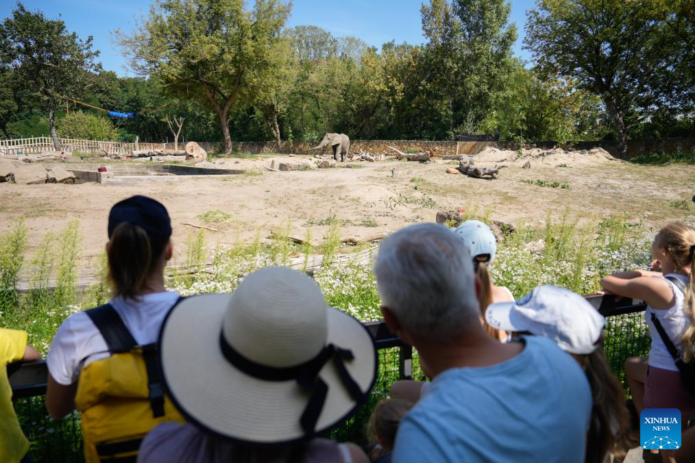 Visitors look at elephants at the Warsaw Zoo in Warsaw, Poland on Aug. 12, 2025. The zoo's elephant house held special activities on Tuesday to mark the World Elephant Day. (Photo by Jaap Arriens/Xinhua)