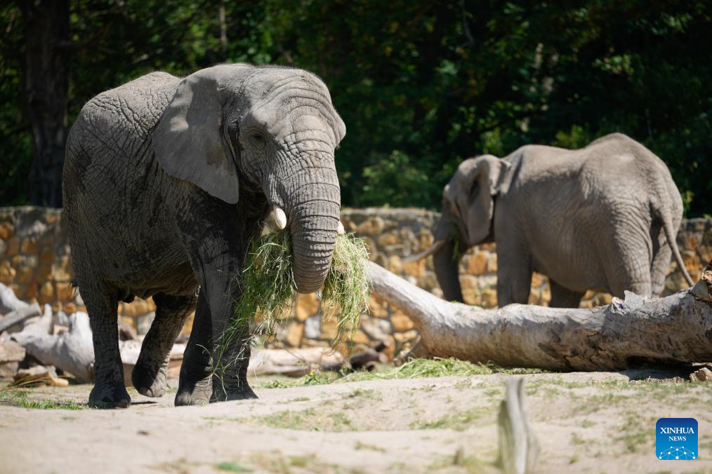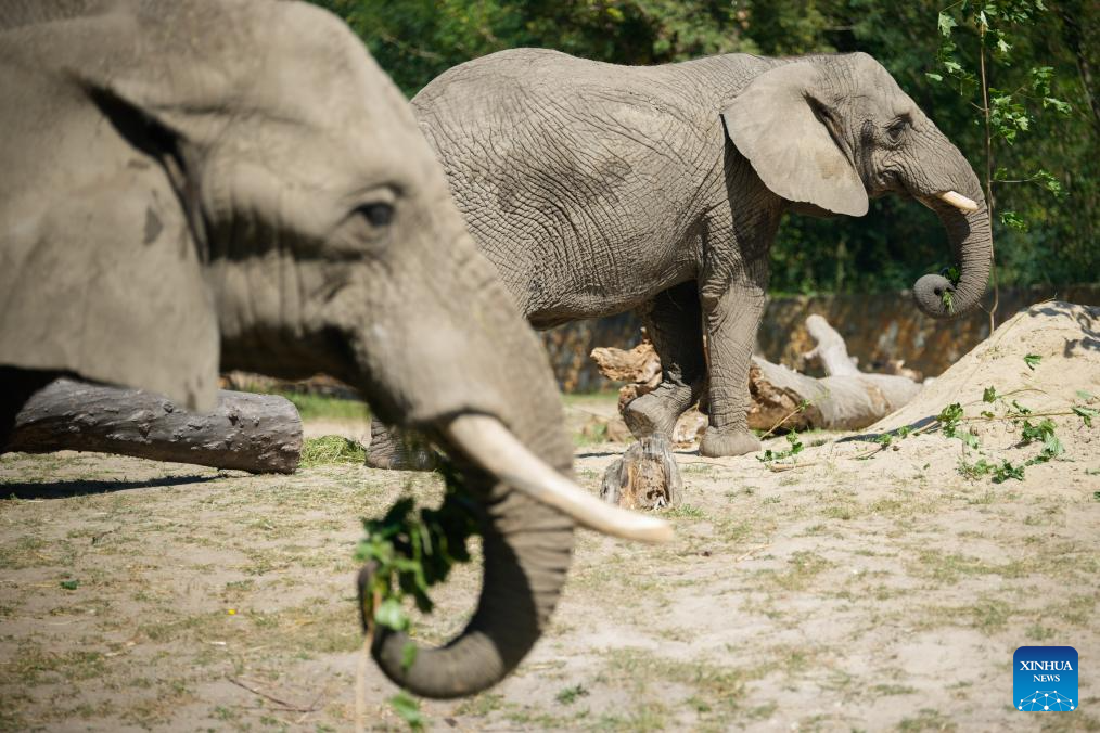 Elephants eat at the Warsaw Zoo in Warsaw, Poland on Aug. 12, 2025. The zoo's elephant house held special activities on Tuesday to mark the World Elephant Day. (Photo by Jaap Arriens/Xinhua)
