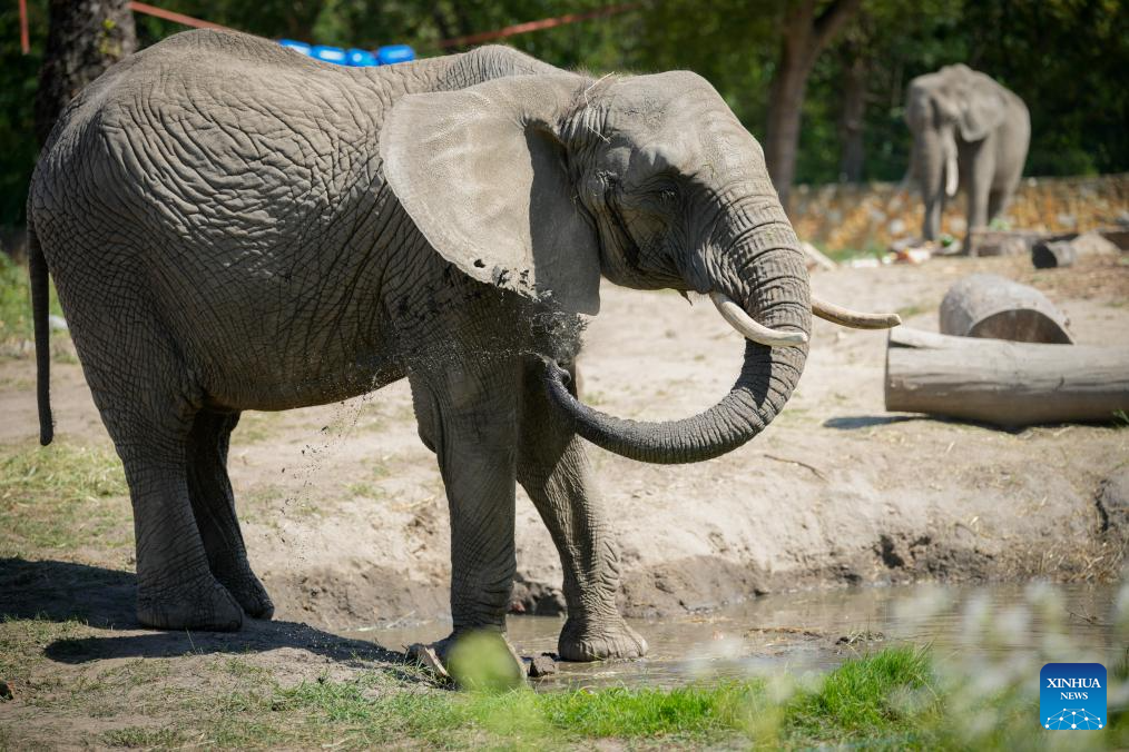 Elephants are pictured at the Warsaw Zoo in Warsaw, Poland on Aug. 12, 2025. The zoo's elephant house held special activities on Tuesday to mark the World Elephant Day. (Photo by Jaap Arriens/Xinhua)