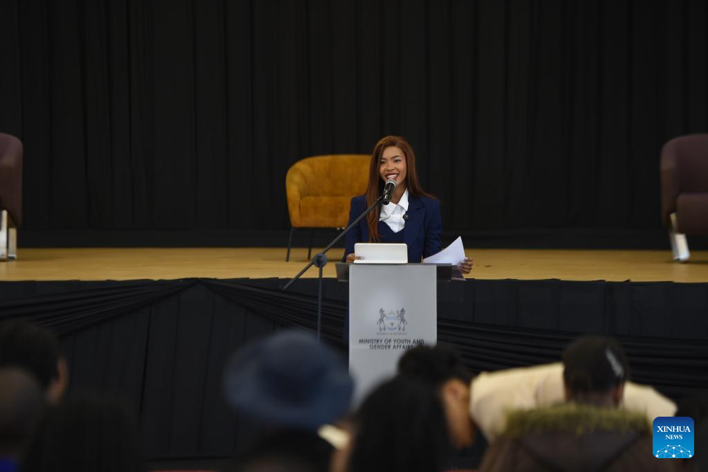 Botswana's Minister of Youth and Gender Affairs Lesego Chombo speaks during the commemoration of International Youth Day in Gaborone, Botswana, Aug. 12, 2025. Chombo on Tuesday stressed the importance of engaging youth as strategic partners in advancing the Sustainable Development Goals (SDGs). (Photo by Tshekiso Tebalo/Xinhua)