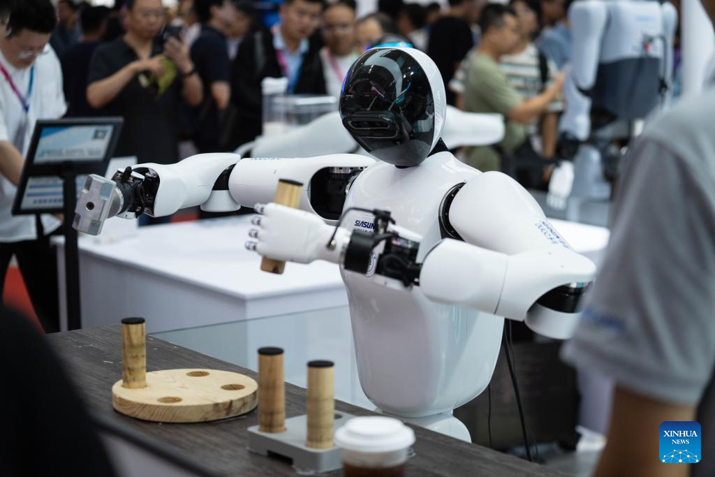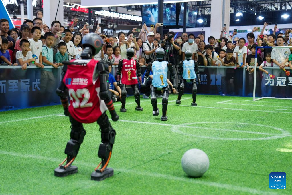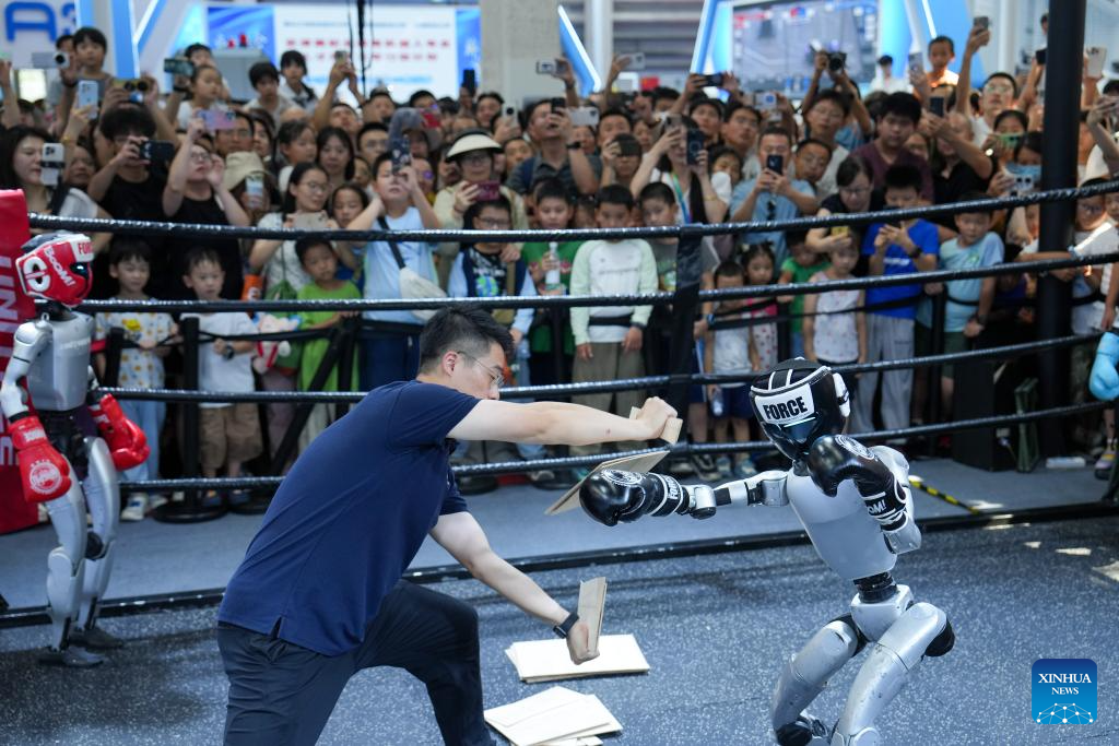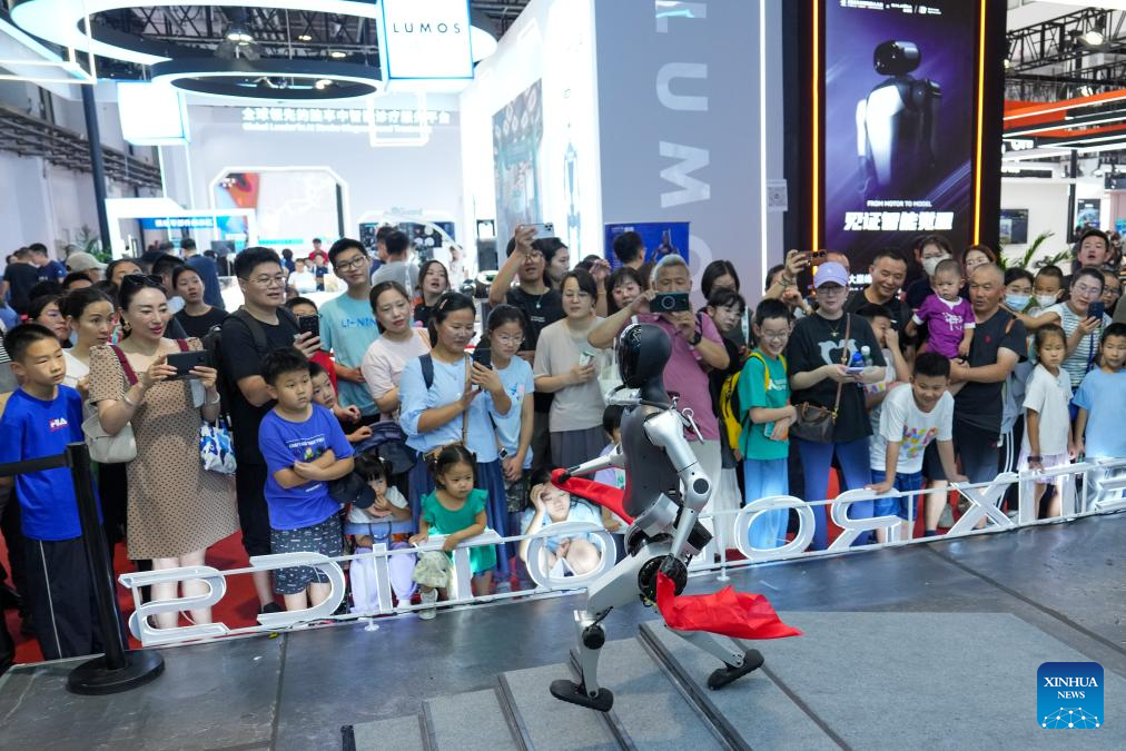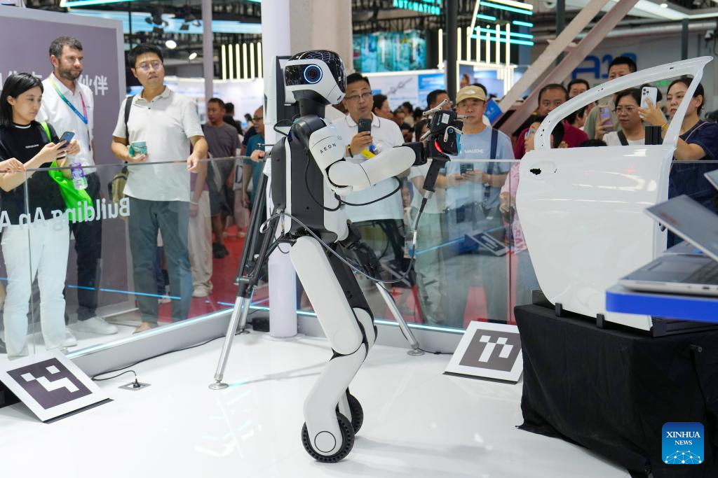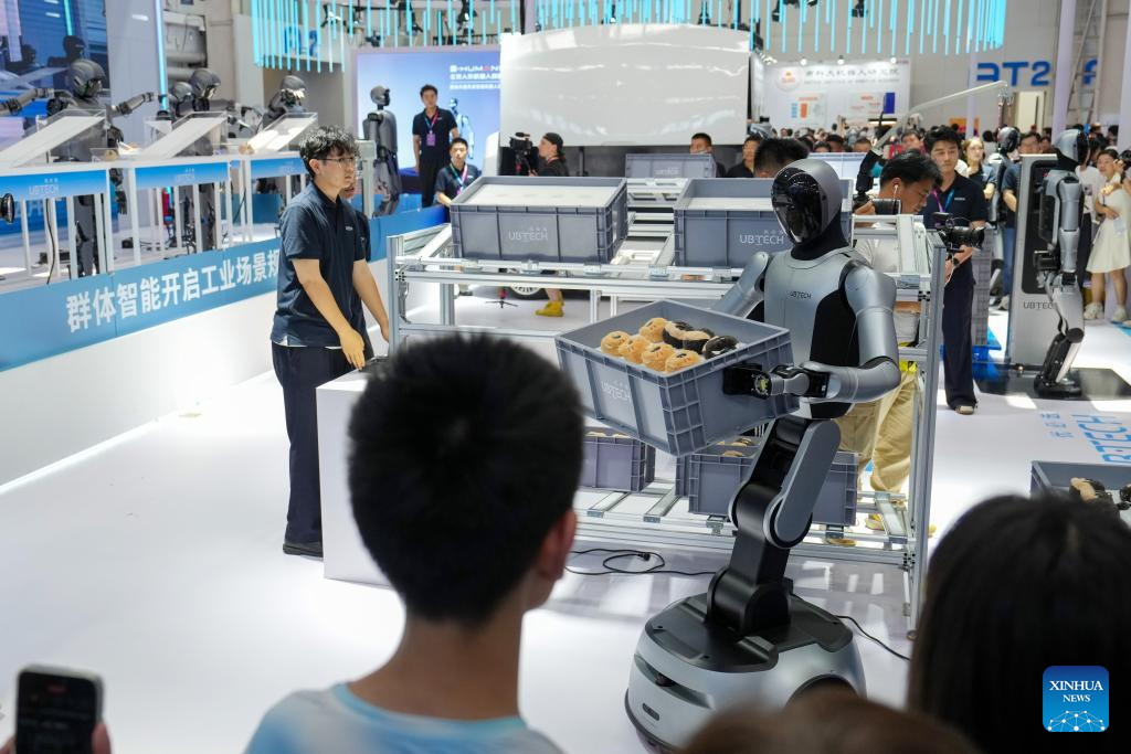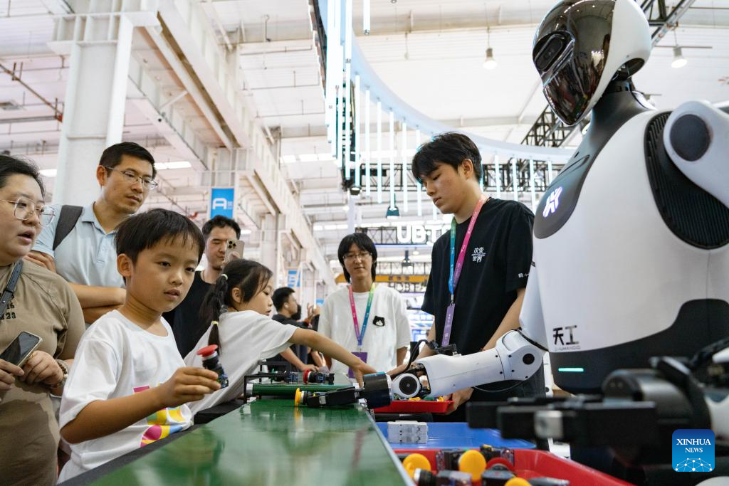 Themed "Making Robots Smarter, Making Embodied Agents More Intelligent," the five-day conference that opened on Aug. 8 features forums, exhibitions, competitions and networking events -- with over 200 robotics companies from around the world presenting their latest innovations. (Xinhua/Xie Han)