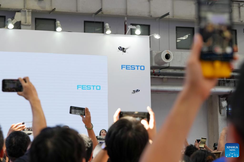 Bionic robots display flying skills during the 2025 World Robot Conference (WRC) in Beijing, capital of China, Aug. 11, 2025. The WRC 2025 showcases rapidly advancing embodied intelligence technology, with humanoid robots as the highlight, demonstrating significant progress achieved globally and particularly in China, while the event also serves to illuminate a wide range of future commercial application scenarios.
