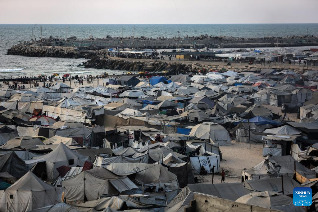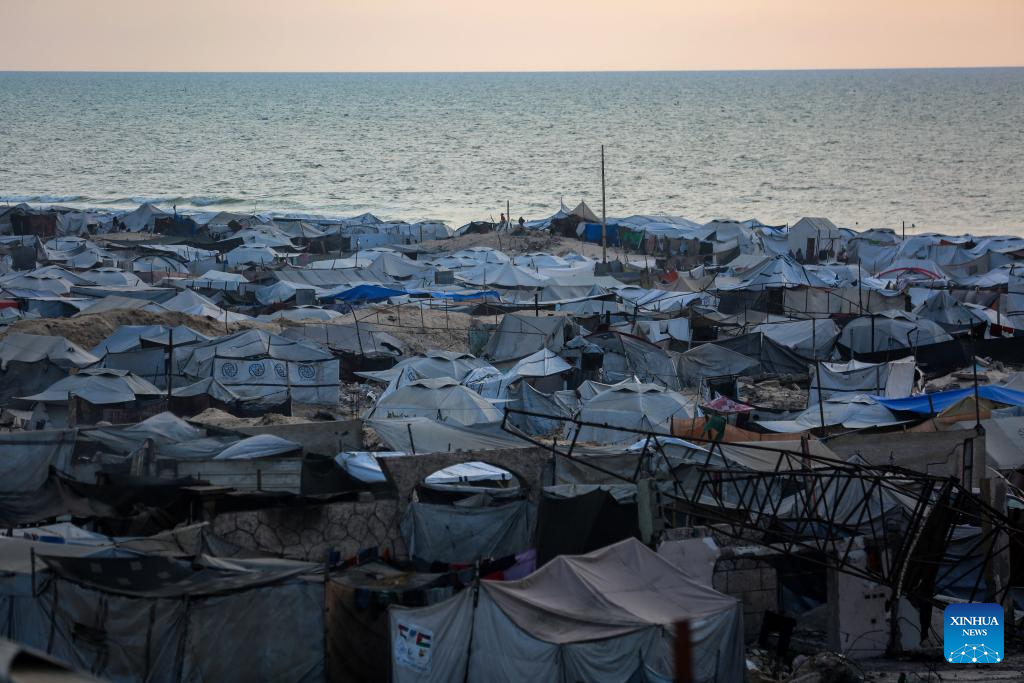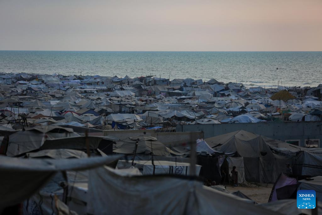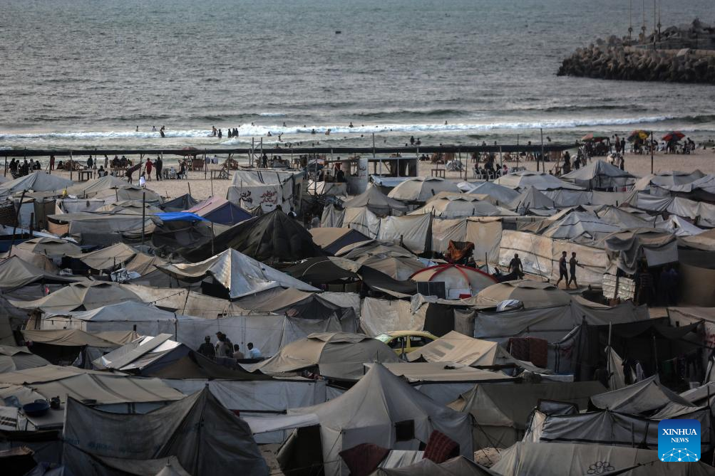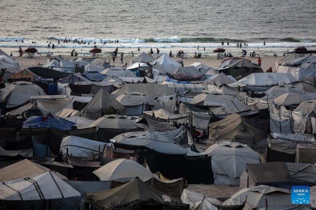 Tents for displaced Palestinians are seen near a beach in Gaza City, on Aug. 10, 2025. (Photo by Rizek Abdeljawad/Xinhua)