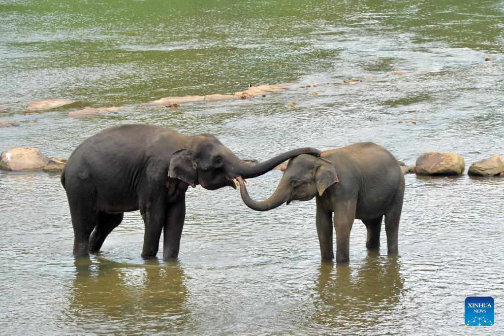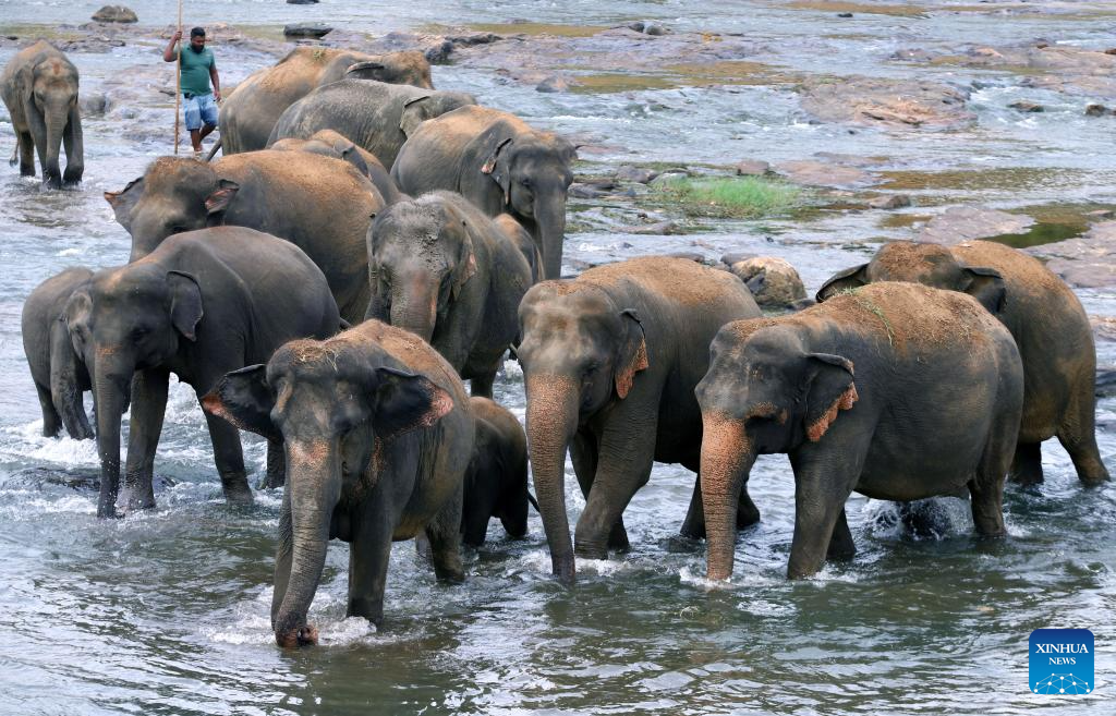 Elephants are seen at the Pinnawala Elephant Orphanage in Sri Lanka, Aug. 10, 2025. Since its establishment in 1975, the elephant orphanage has adopted many orphaned and injured elephants. World Elephant Day falls on Aug. 12 each year. (Photo by Gayan Sameera/Xinhua)
