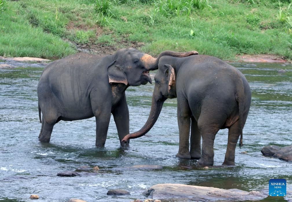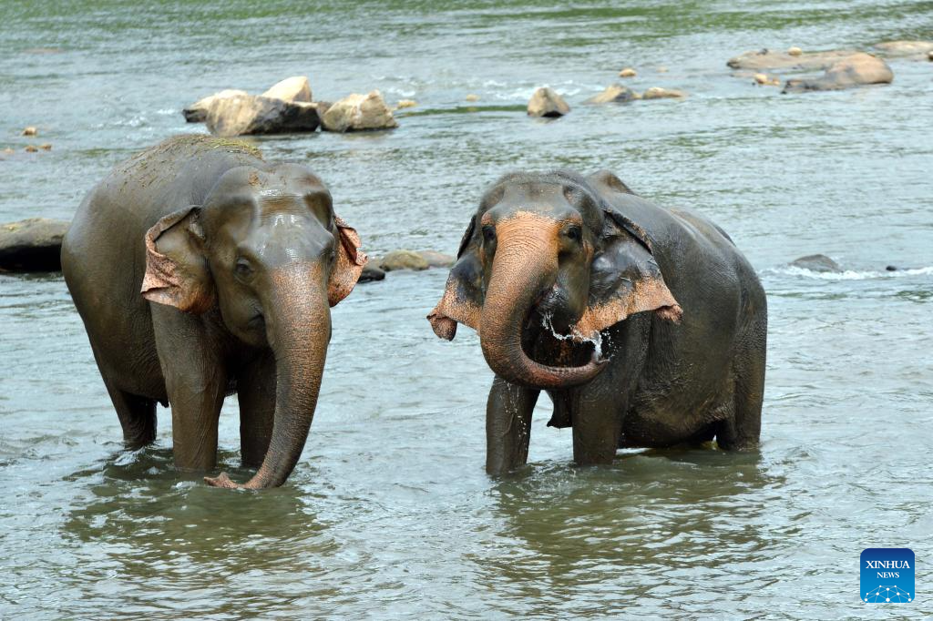 Elephants are seen at the Pinnawala Elephant Orphanage in Sri Lanka, Aug. 9, 2025. Since its establishment in 1975, the elephant orphanage has adopted many orphaned and injured elephants. World Elephant Day falls on Aug. 12 each year. (Photo by Ajith Perera/Xinhua)