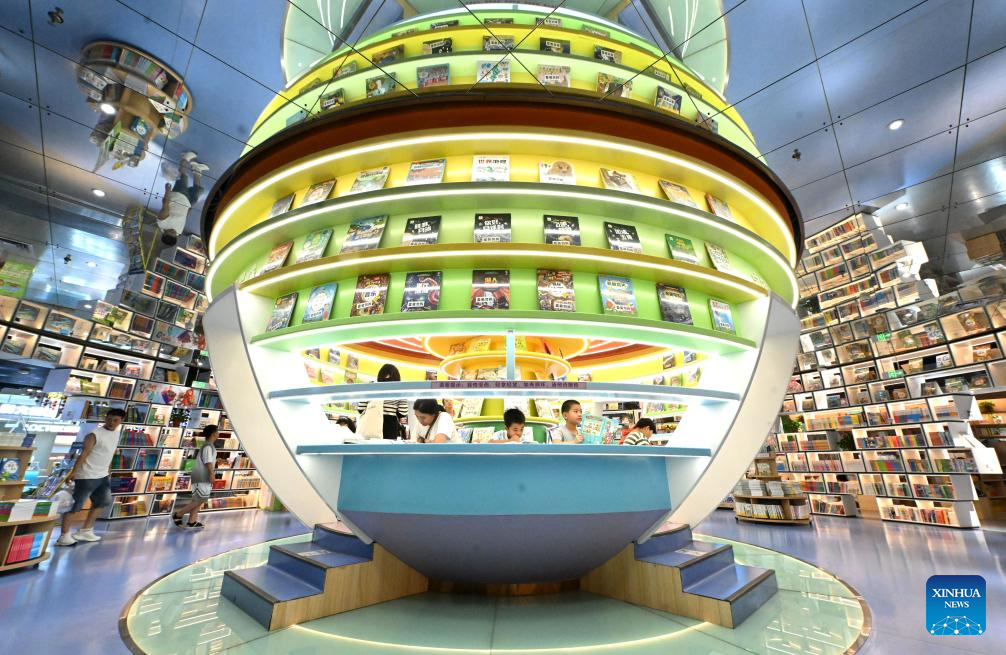 Children read books at a bookstore in Shijiazhuang, north China's Hebei Province, Aug. 11, 2025. Children across China take part in various kinds of activities to spend their summer holiday. (Photo by Chen Qibao/Xinhua)