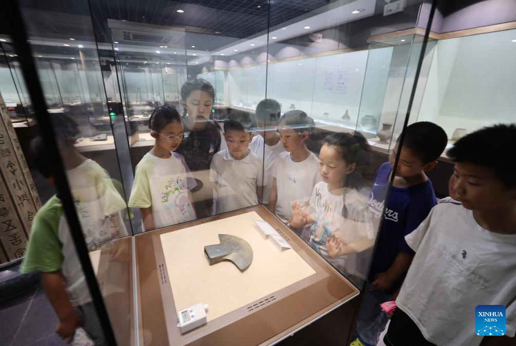 Children visit a museum in Yinan County of Linyi, east China's Shandong Province, Aug. 12, 2025. Children across China take part in various kinds of activities to spend their summer holiday. (Photo by Wang Yanbing/Xinhua)