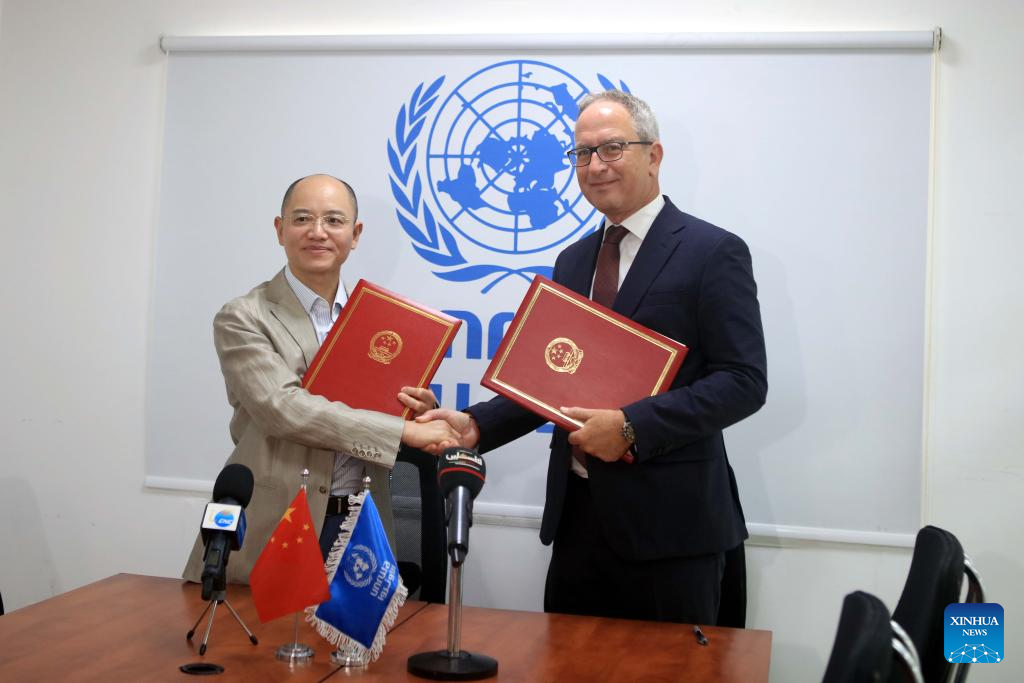 AMMAN, Aug. 13 (Xinhua) -- China signed an agreement on Wednesday to contribute to the UN agency for Palestinian refugees (UNRWA) and called for continued international support for the body, which says it faces an "existential crisis" from the war in Gaza and a severe funding gap.