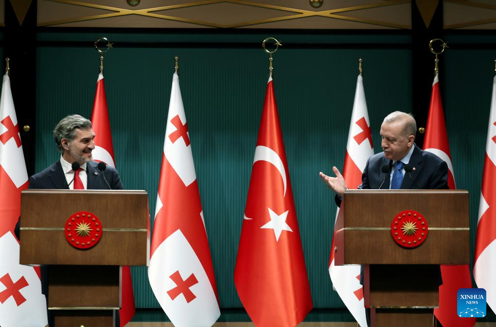 ANKARA, Aug. 12 (Xinhua) -- Türkiye and Georgia will continue to work "shoulder to shoulder" for regional cooperation, peace and development, Turkish President Recep Tayyip Erdogan said Tuesday.