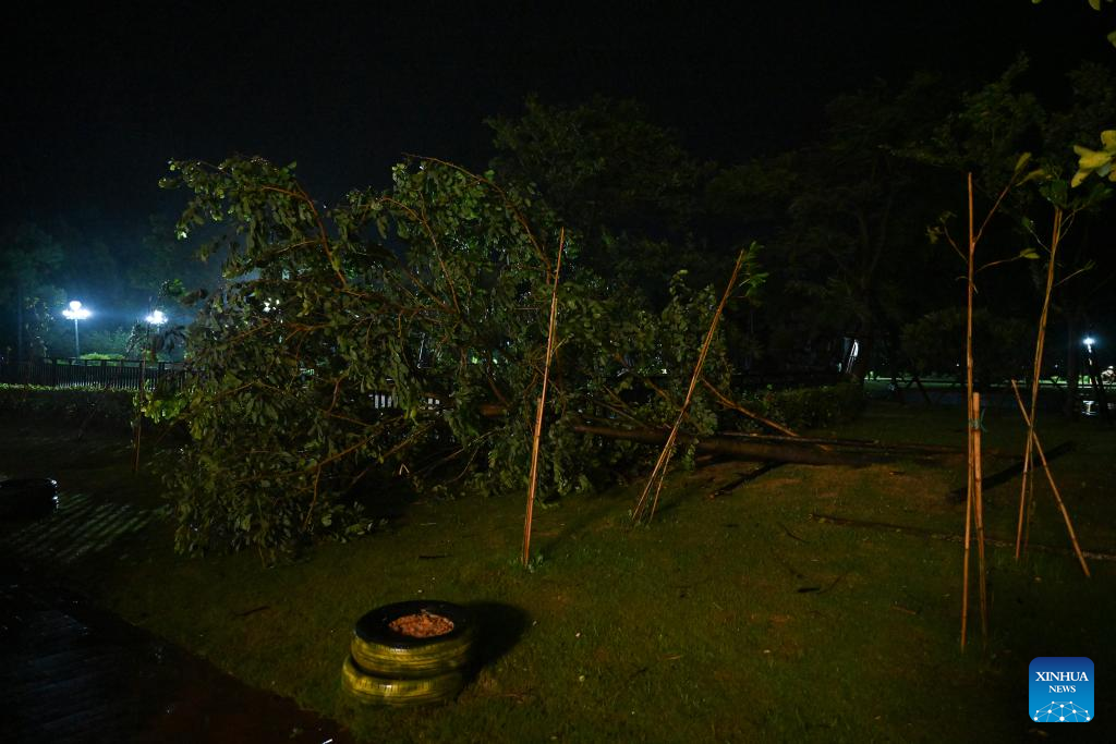 It was classified as a severe tropical storm at the time of the latest landfall, with maximum sustained winds of 30 meters per second near its center. (Xinhua/Zhou Yi)