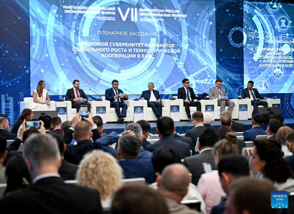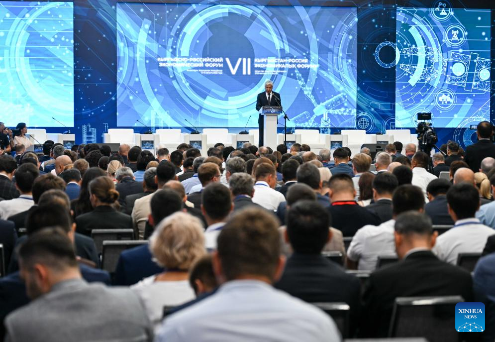 BISHKEK, Aug. 14 (Xinhua) -- The 7th Kyrgyz-Russian Economic Forum being held in Kyrgyzstan's eastern resort town Cholpon-Ata on Thursday has gathered over 1,000 people, including government officials and business leaders, who are expected to discuss a range of issues such as digital sovereignty and technological cooperation.