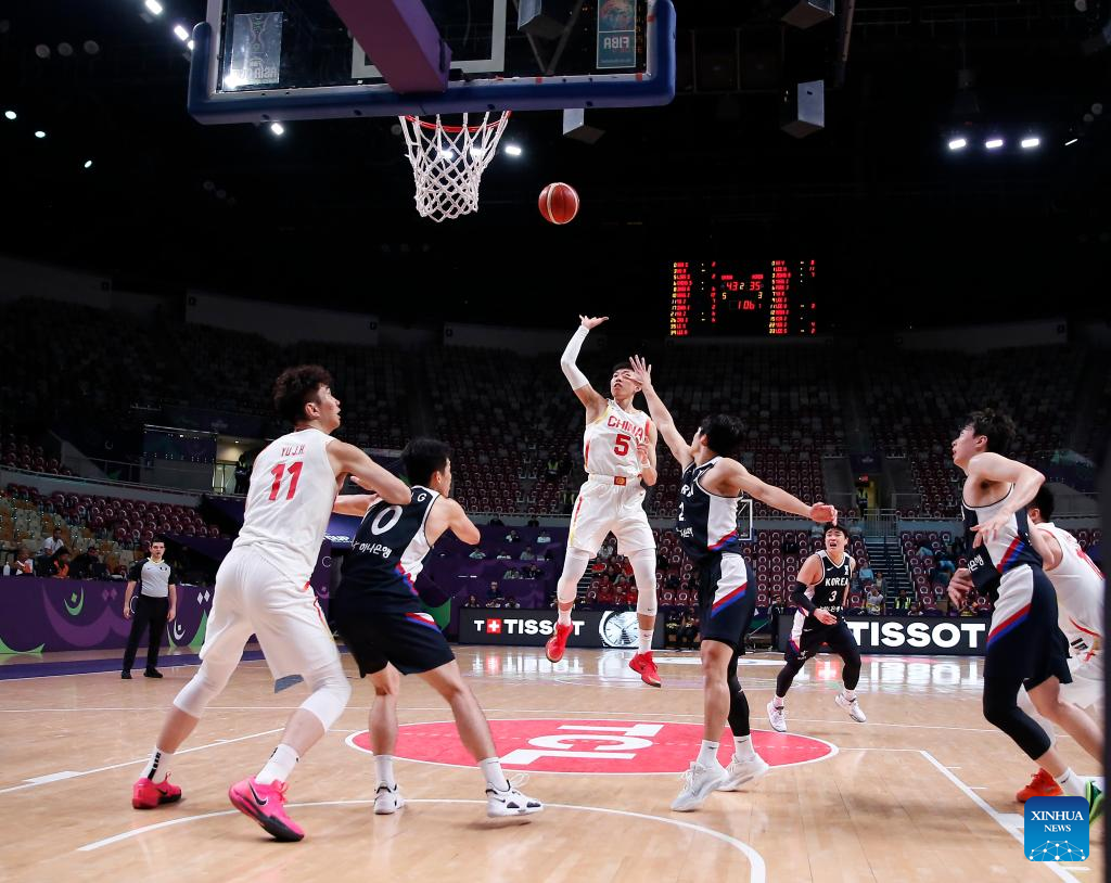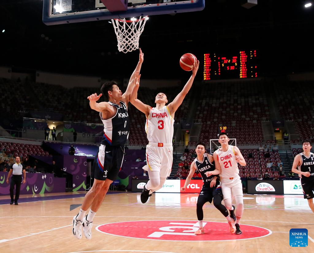 JEDDAH, Aug. 14 (Xinhua) -- China's men's basketball team edged South Korea 79-71 to reach the FIBA Asia Cup semifinals here on Thursday.