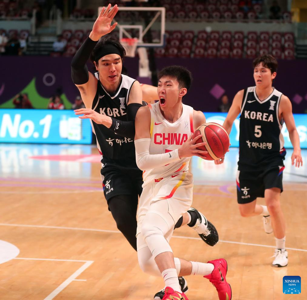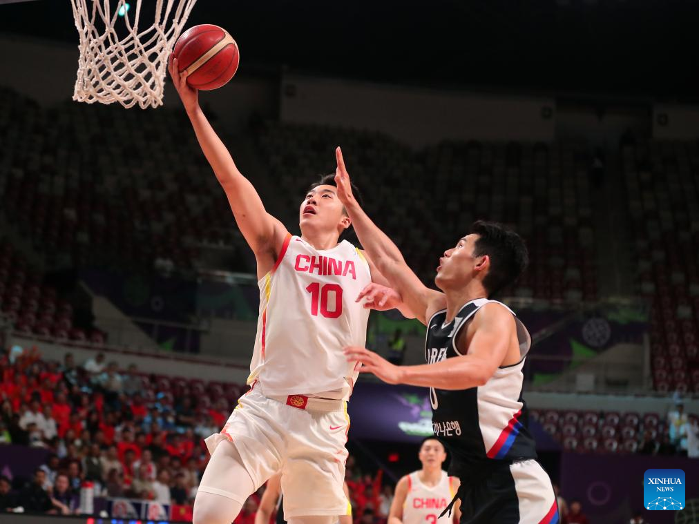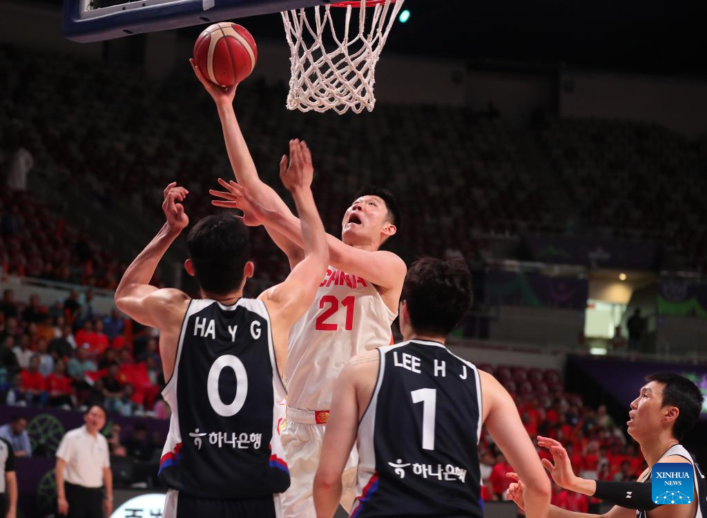 Wang made a three pointer with 38 seconds left in the second quarter as China took the lead on 46-35 at the break. China increased the lead to 18 points in the third quarter before South Korea cut the deficit to six points with 51 seconds remaining in the final period. Liao Sanning answered with a step back jumper with 31 seconds left to help China seal the victory. ■