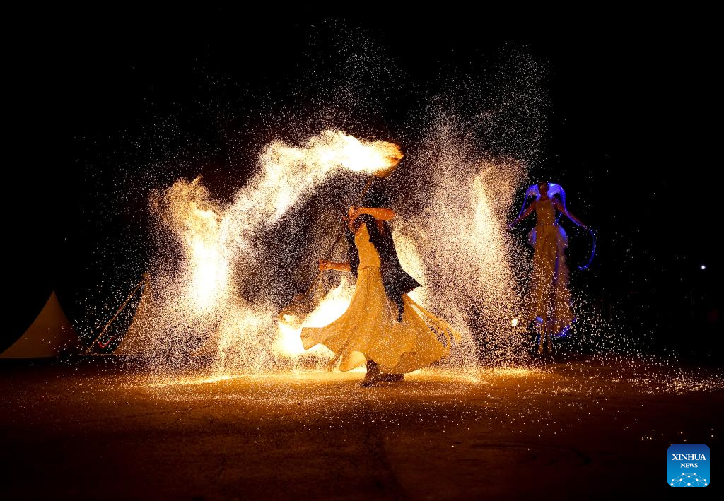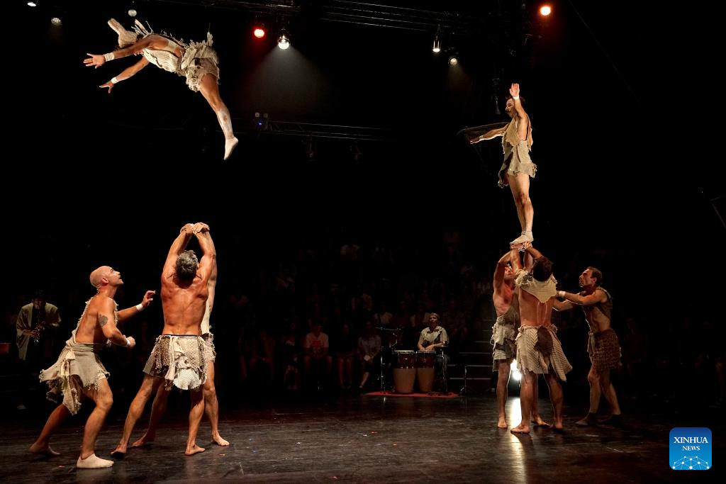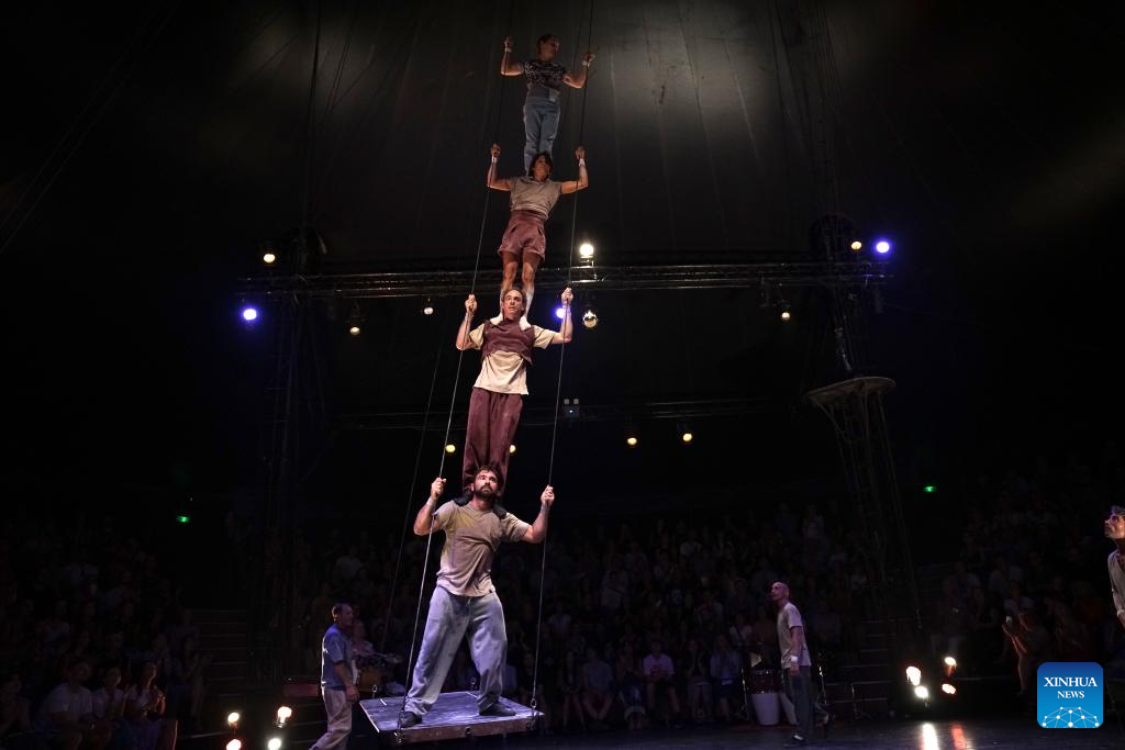 Artists perform on the opening day of the Letni Letna festival, an international festival of contemporary circus and theater, in Prague, the Czech Republic, on Aug. 13, 2025. The festival runs from Aug. 13 to 31 this year. (Photo by Dana Kesnerova/Xinhua)