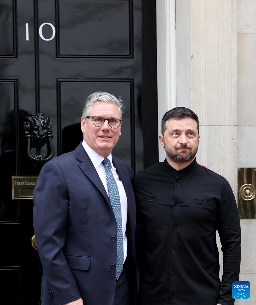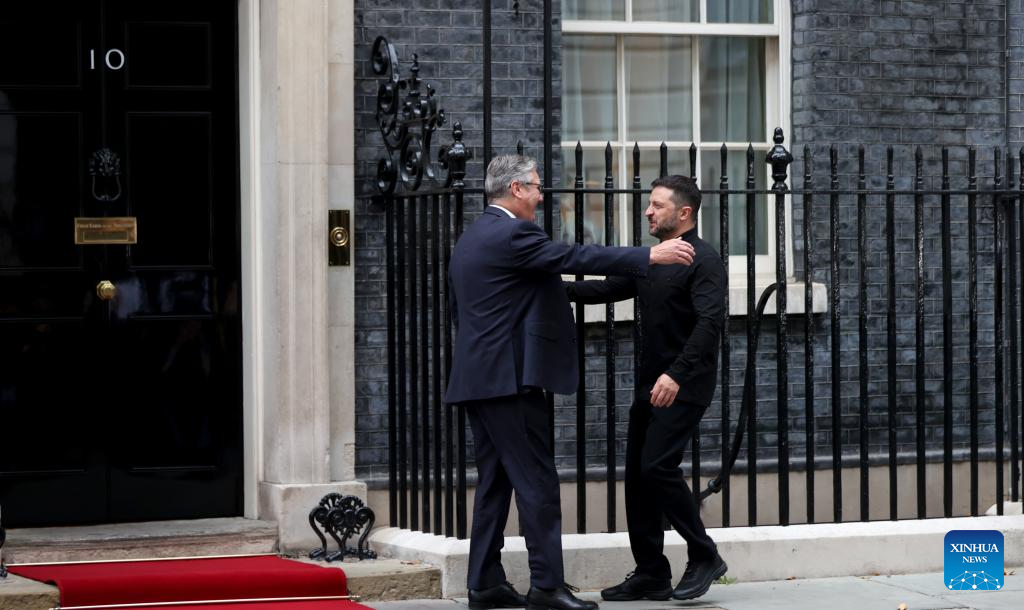 LONDON, Aug. 14 (Xinhua) -- British Prime Minister Keir Starmer met with Ukrainian President Volodymyr Zelensky on Thursday at Downing Street in London, the Prime Minister's Office said.