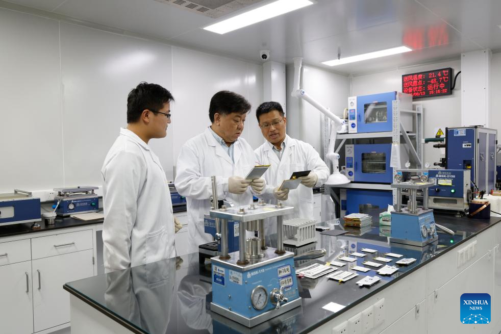 TIANJIN, Aug. 15 (Xinhua) -- Chinese researchers have unveiled a novel design for lithium metal batteries, leading to the development of a lithium metal pouch cell with an energy density exceeding 600 Wh/kg and a battery pack achieving 480 Wh/kg.