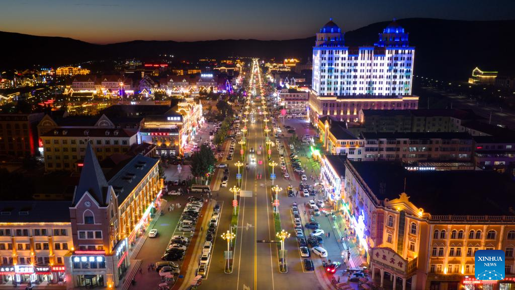 An aerial drone photo taken on July 27, 2025 shows a night view in Arxan, north China's Inner Mongolia Autonomous Region. Arxan, a city with less than 40,000 residents and a vegetation coverage of over 95 percent, sits at the southwestern foot of the Dahinggan Mountains, also the intersection of four major grasslands in northern China. It is now an increasingly popular tourist destination. (Xinhua/Ma Jinrui)