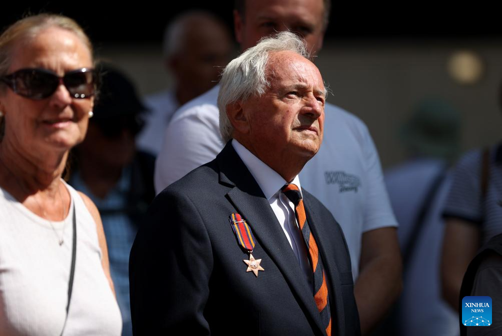 LONDON, Aug. 15 (Xinhua) -- At midday Friday, at the National Memorial Arboretum in Staffordshire, a ceremonial county of England some 200 km from London, King Charles III, Prime Minister Keir Starmer, and ranks of British soldiers stood in a two-minute silence, honoring the history and sacrifices made in the Far East during World War II (WWII), as the British Royal Air Force's Red Arrows flew over the memorial site.