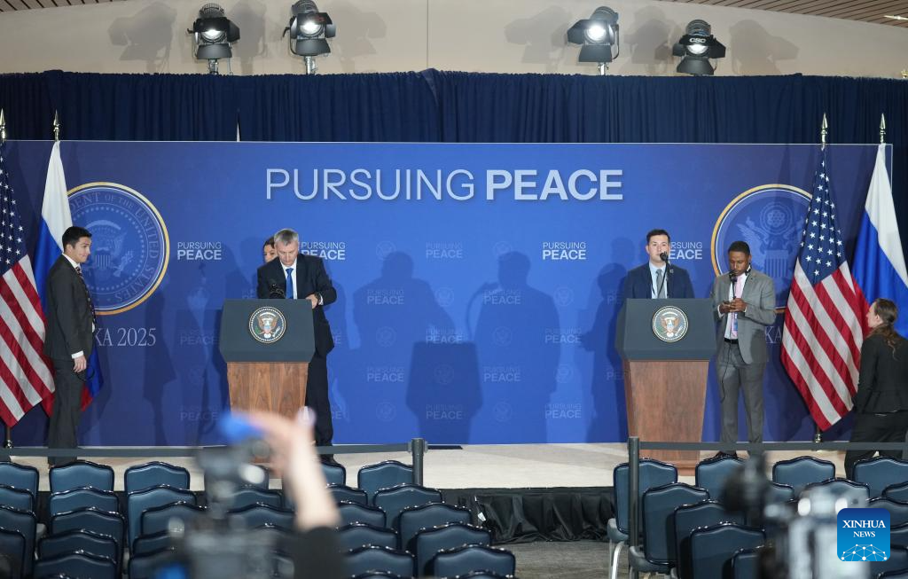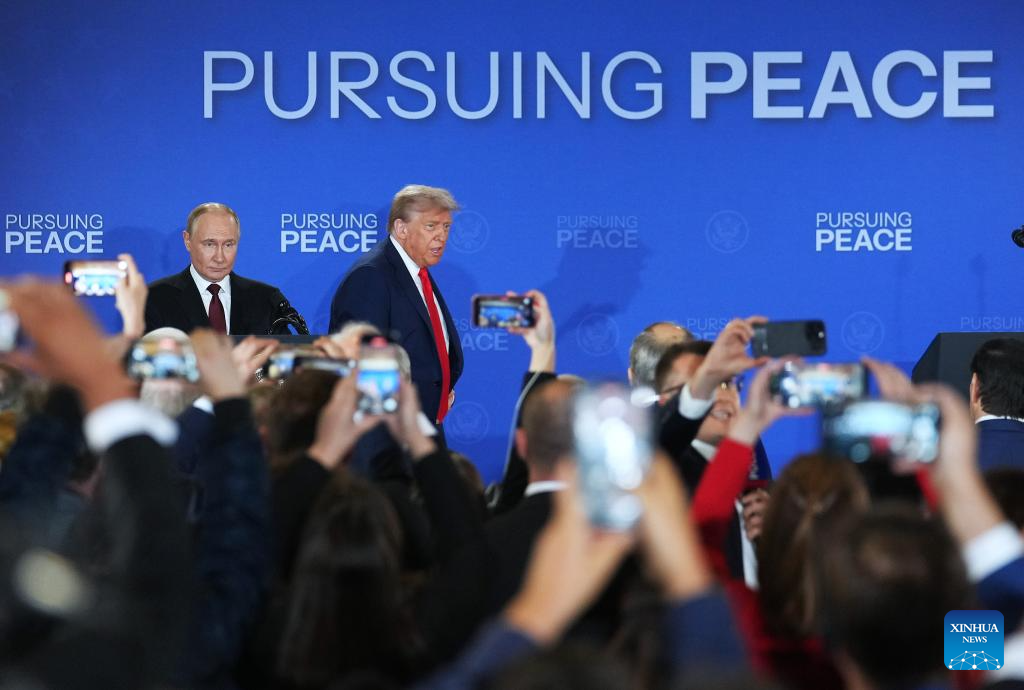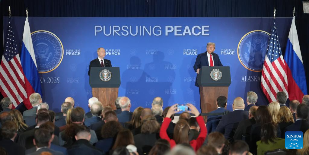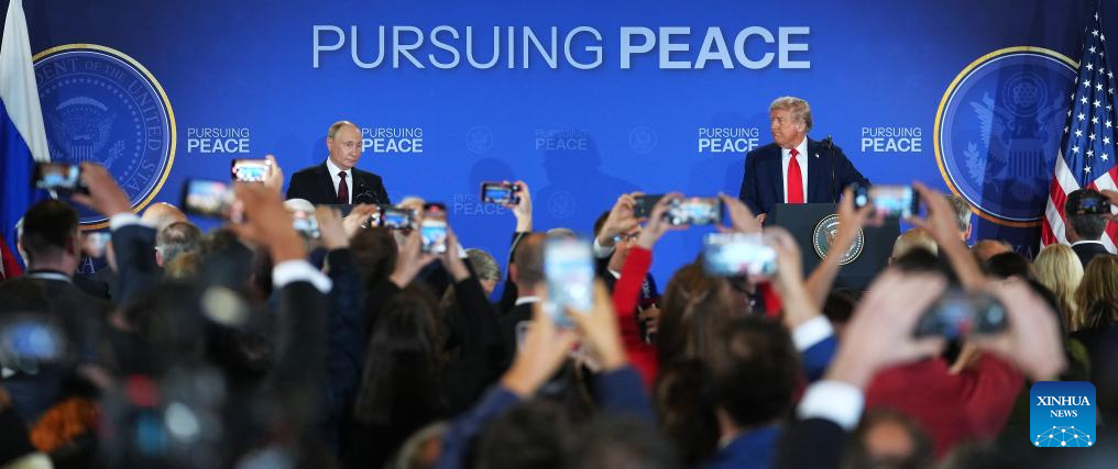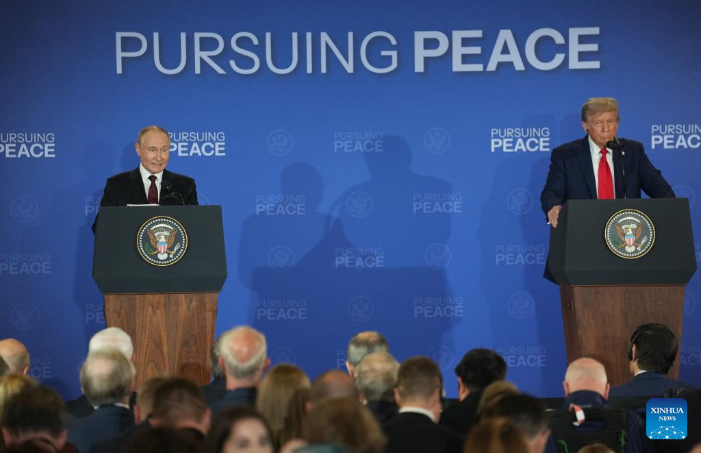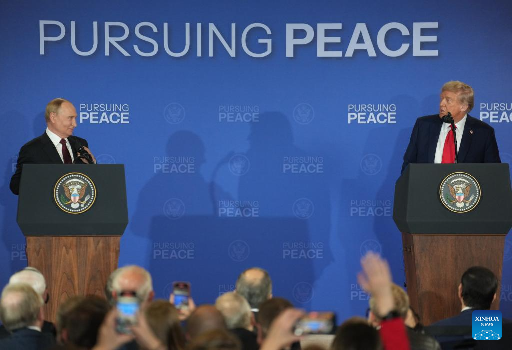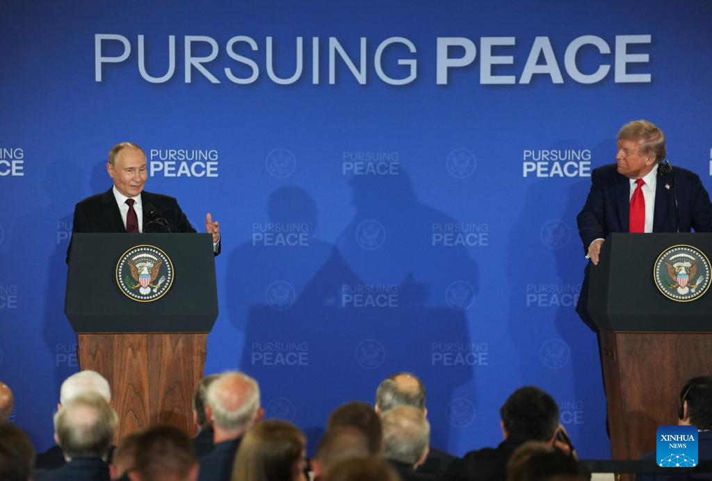 ANCHORAGE, United States, Aug. 15 (Xinhua) -- U.S. President Donald Trump and Russian President Vladimir Putin appeared at a joint press conference on Friday after concluding their talks in Anchorage, the U.S. state of Alaska.
