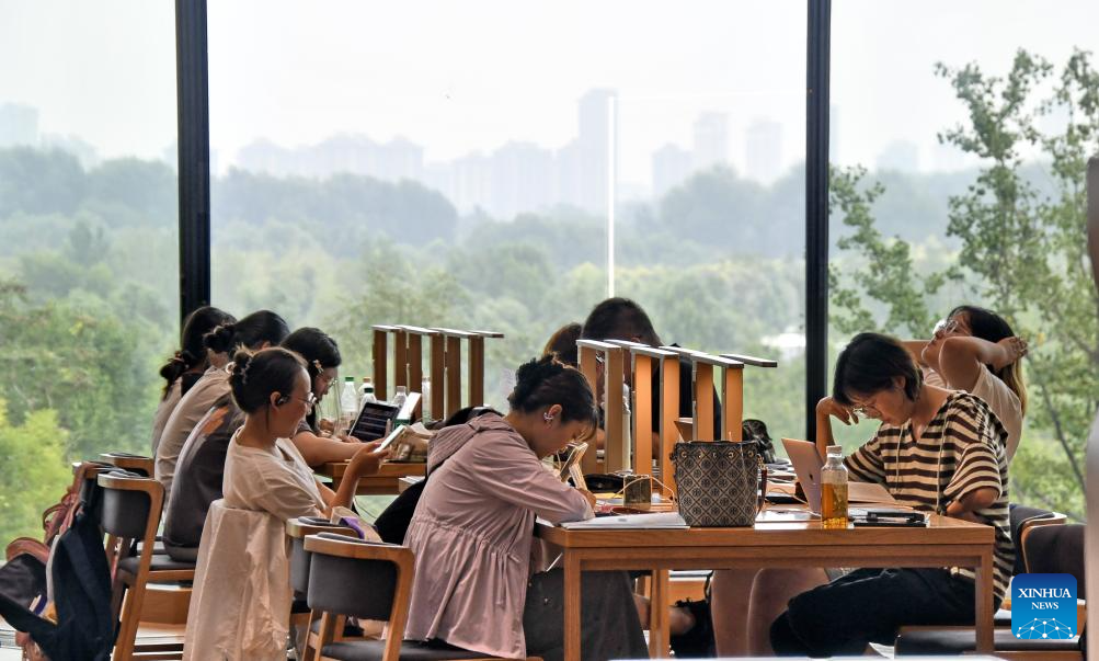 People read books at Beijing Library in Tongzhou District of Beijing, capital of China, Aug. 15, 2025. Connecting Beijing and Hangzhou in east China's Zhejiang Province, the Grand Canal is the world's longest artificial waterway.