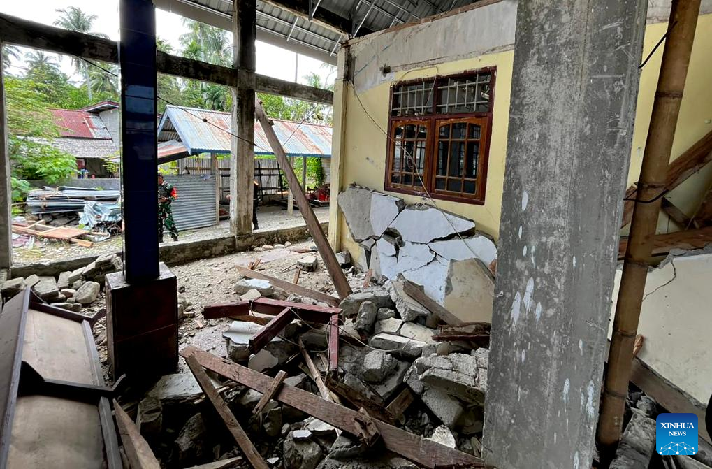 This photo taken with a mobile phone provided by Regional Disaster Management Agency (BPBD) Central Sulawesi shows a damaged building after an earthquake in Poso Regency, Central Sulawesi, Indonesia, on Aug. 17, 2025. A 6.0-magnitude earthquake struck Poso Regency in Central Sulawesi Province, Indonesia, early Sunday, injuring at least 29 people, the country's National Disaster Management Agency (BNPB) said in a statement. (BPBD Central Sulawesi/Handout via Xinhua)
