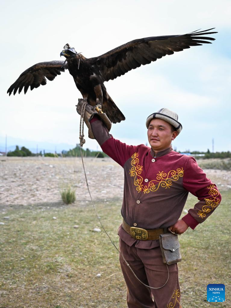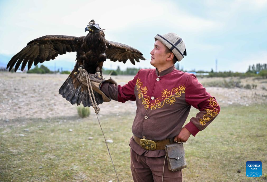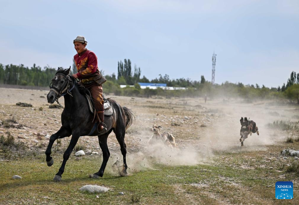 The herders living in eastern Kyrgyzstan inherited the hunting customs of their ancestors, and still maintain the tradition of taming falcons and hunting dogs. (Xinhua/Li Renzi)