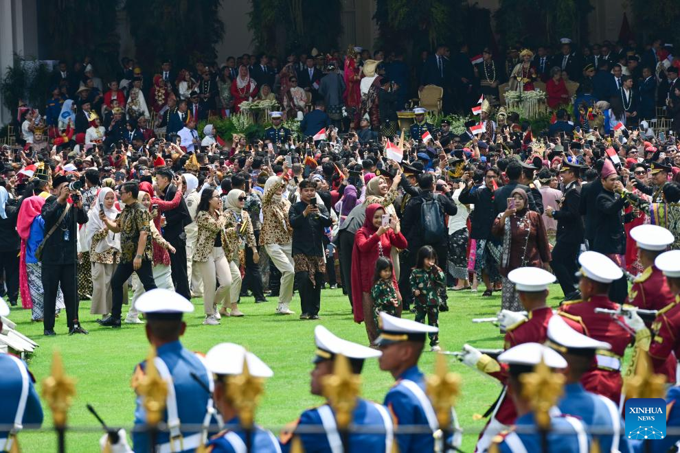 This photo taken on Aug. 17, 2025 shows the celebration event of Indonesia's 80th Independence Day at Merdeka Palace in Jakarta, Indonesia. Various activities were held to celebrate the 80th Independence Day in Indonesia. (Xinhua/Zulkarnain)